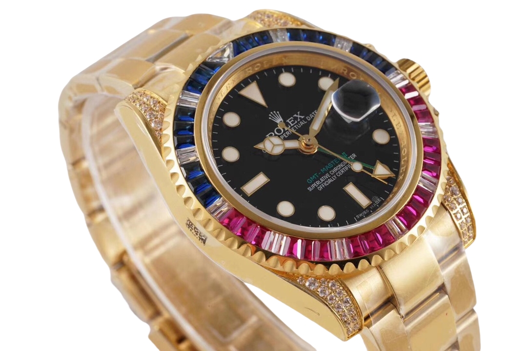 Rolex GMT-Master II 40mm Full Diamond Dial Blue & Red Diamond Yellow Gold Bezel 116758-SARU