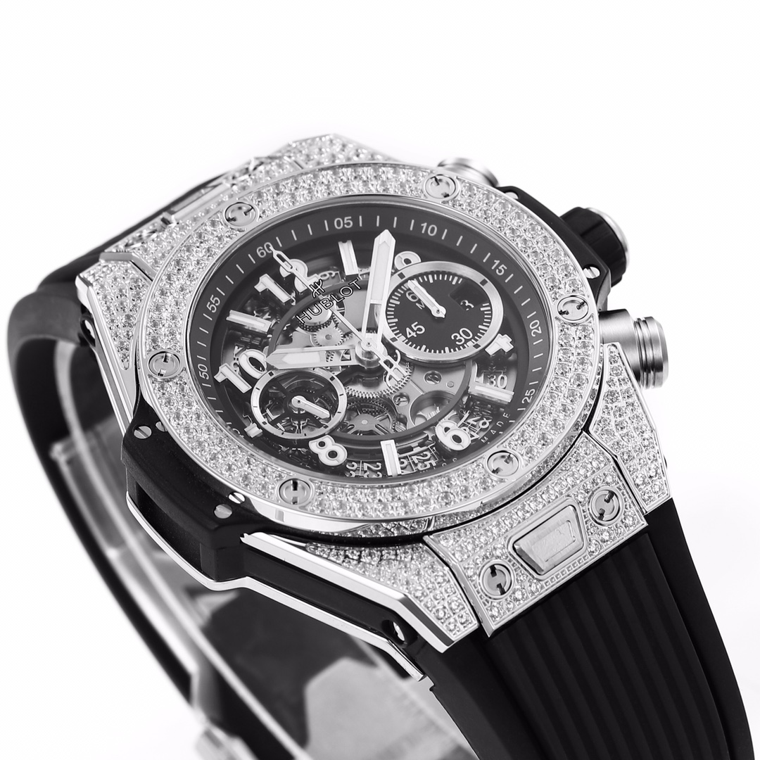 | Hublot Big Bang Unico 45mm Dial Titanium Full Diamond Bezel Black Rubber Strap 411.NX.117X.RX.1704 | |