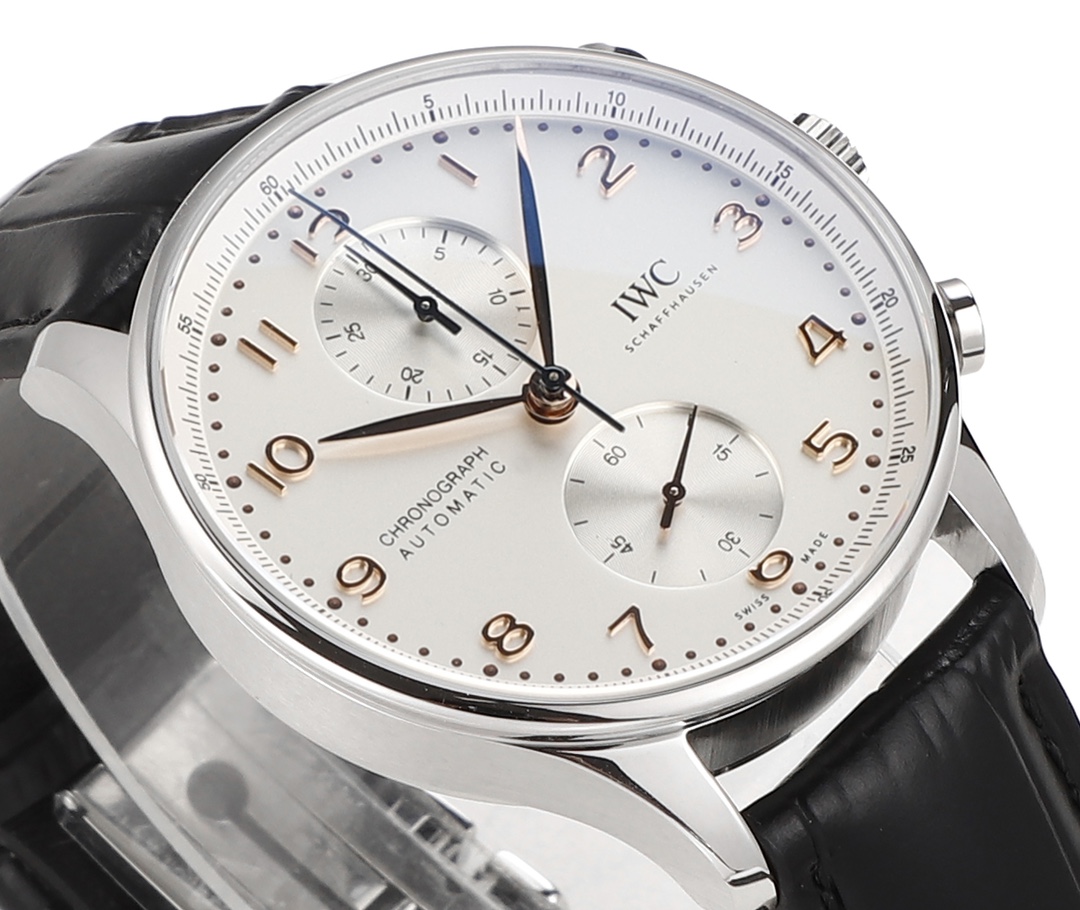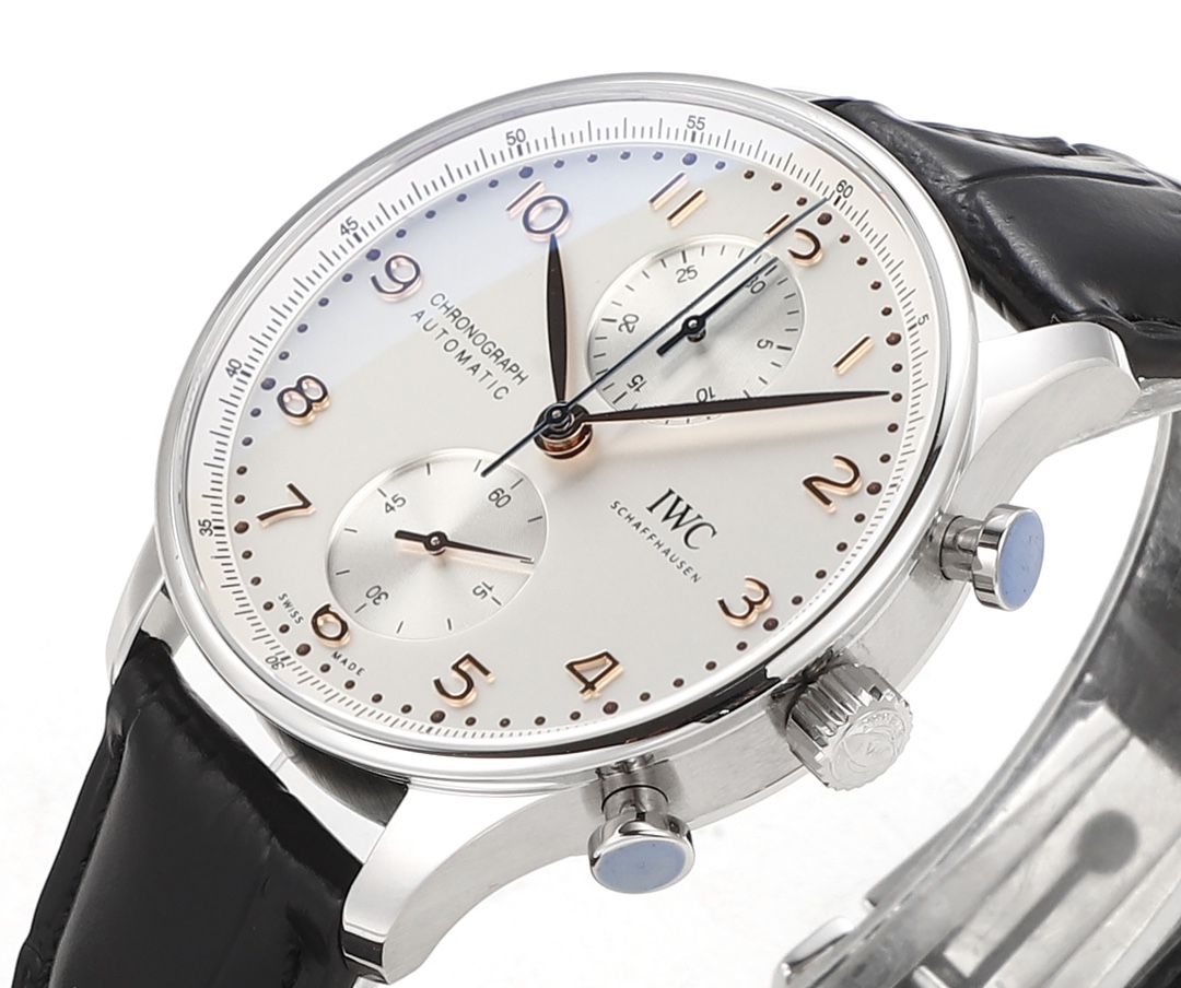 | IWC Portugieser 41mm White Dial Rose Gold Hands Steel Bezel Black Leather Strap IW371445 | |