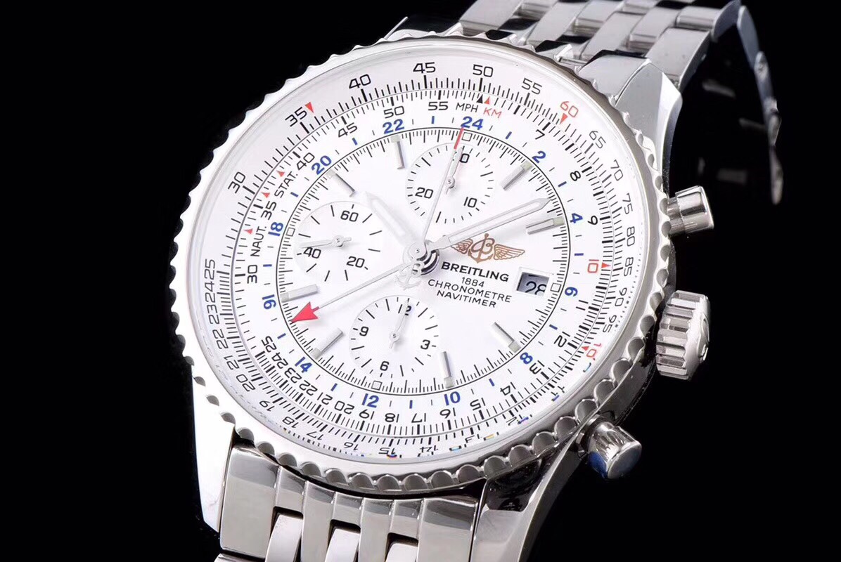• Breitling Navitimer 46mm White Dial Steel Bezel Steel Strap A24322121G1A1