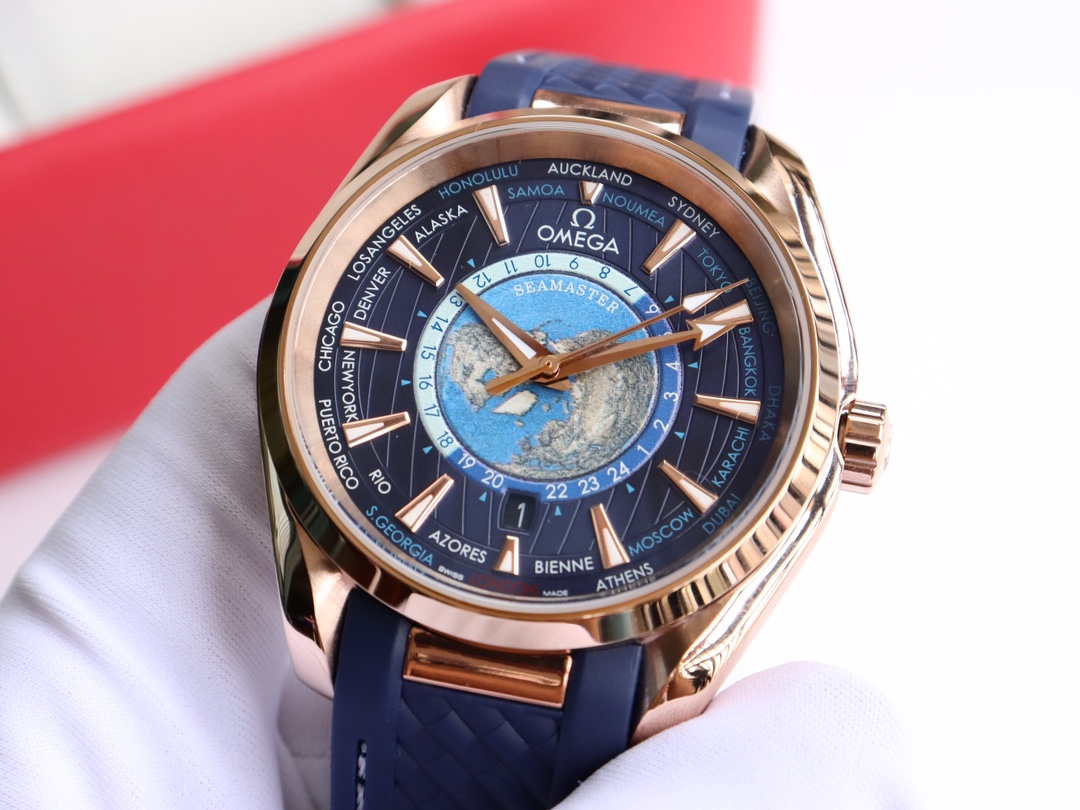 Omega Seamaster Aqua Teera 150 Meter Watch 41mm Gold Steel Diameter Blue Strap