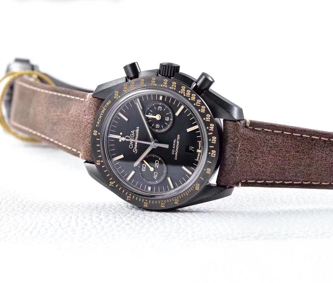 Omega Dark Side of the Moon Speedmaster 44.25mm Black Dial Black Yellow Bezel Brown Leather Strap 311.92.44.51.01.006