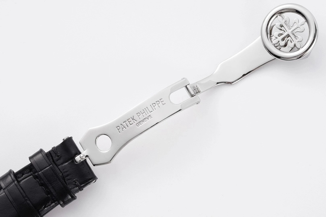 | Patek Philippe Calatrava 38mm White Dial Steel Bezel Black Leather Strap 5153G-010 | |