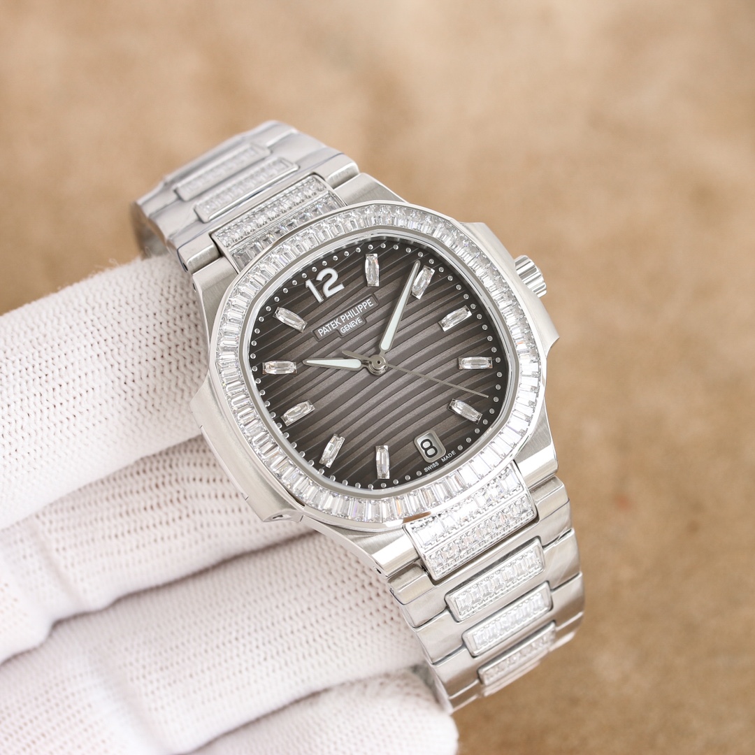 | Patek Philippe Nautilus 35.2mm Black Grey Dial Gen Bezel Platinum Strap 7014/1G Women | |