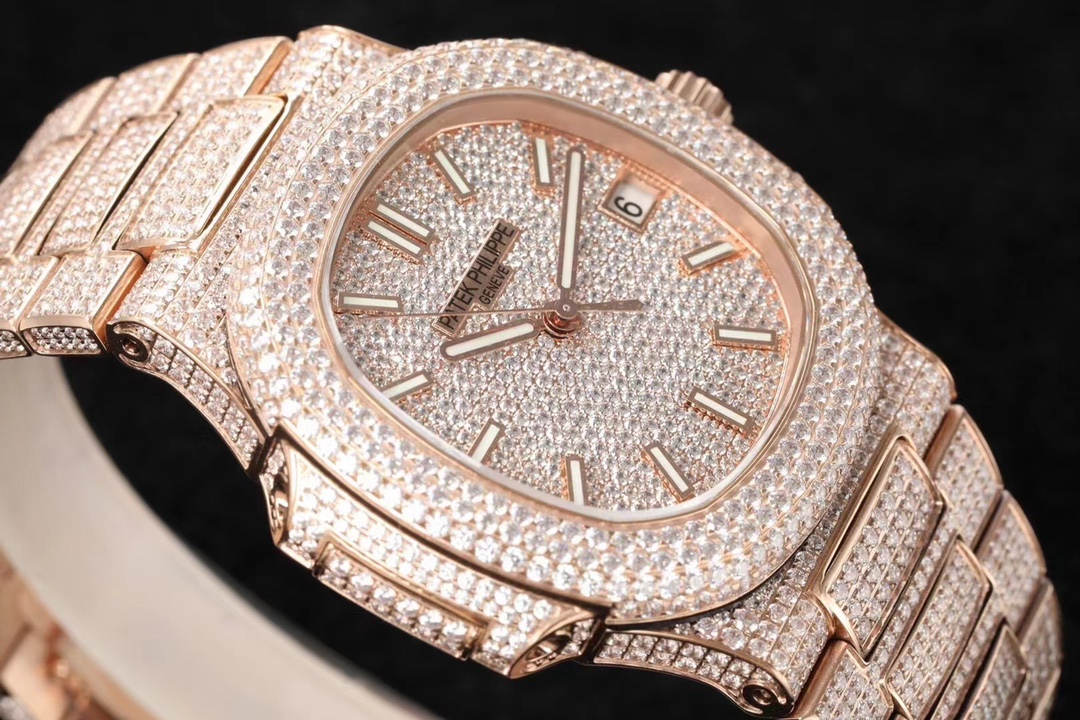 | Patek Philippe Nautilus 40mm Diamond Dial Rose Gold Diamond Bezel Diamond Strap 5711FD | |