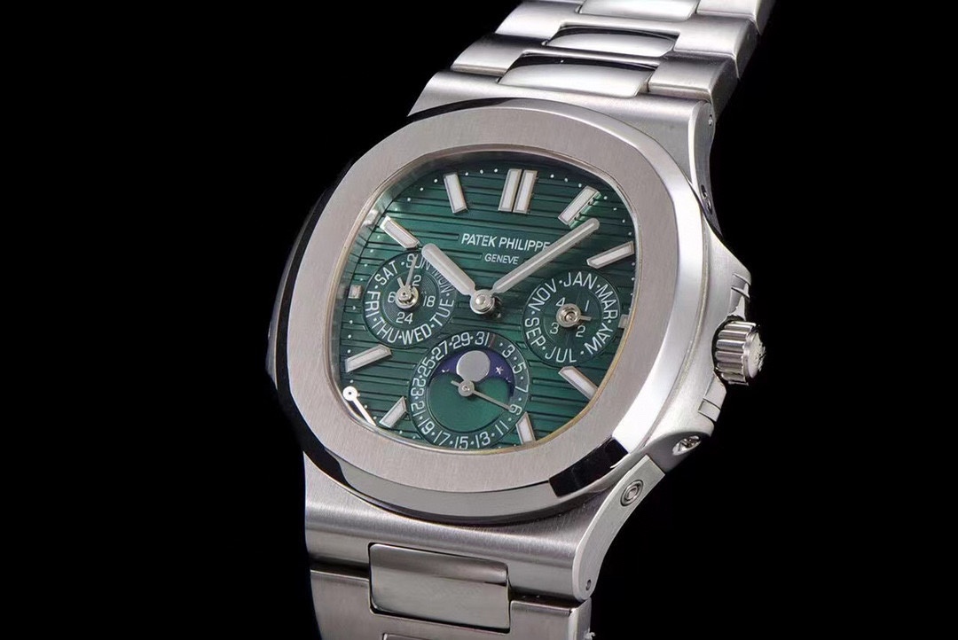| Patek Philippe Nautilus 40mm Green Moon Phase Dial Platinum Bezel Complications 5740 | |