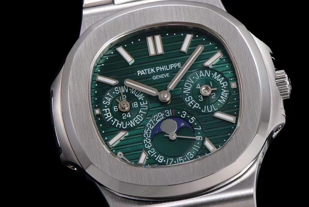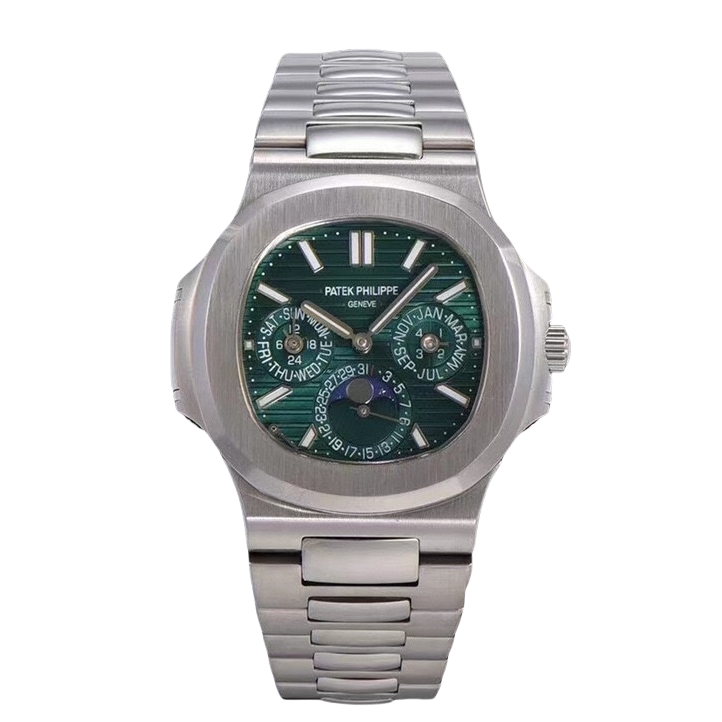 Patek Philippe Nautilus 40mm Green Moon Phase Dial Platinum Bezel Complications 5740