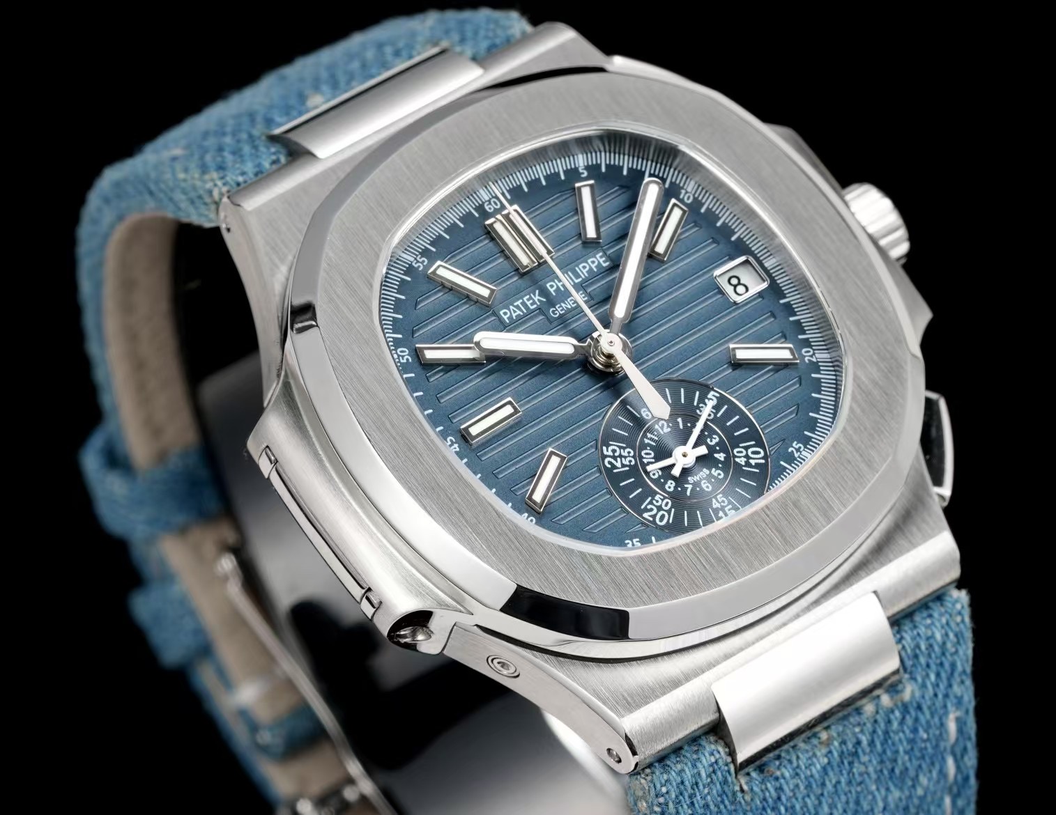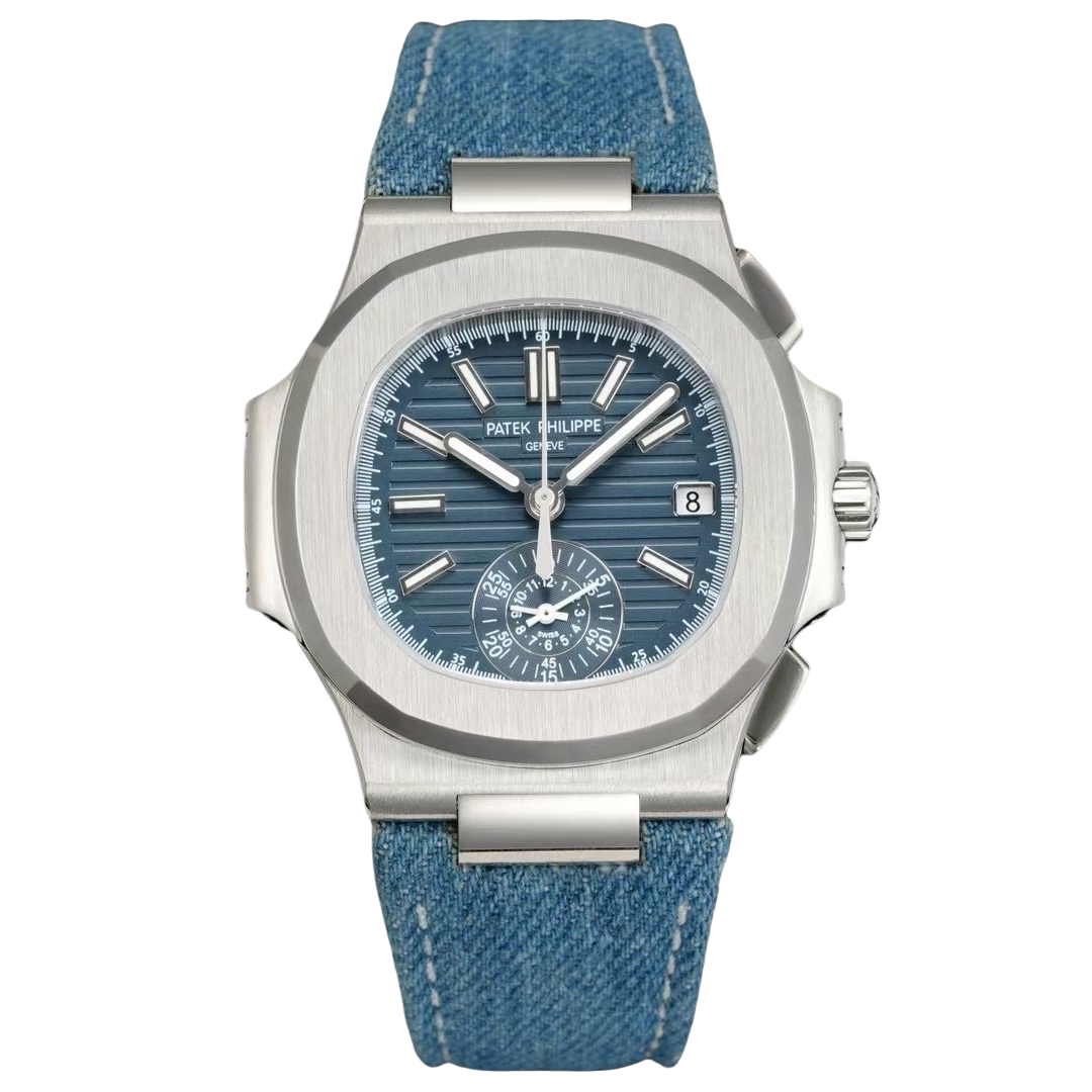 Patek Philippe Nautilus 40.5mm Blue Dial Steel Bezel Blue Denim Strap 5980/60G-001