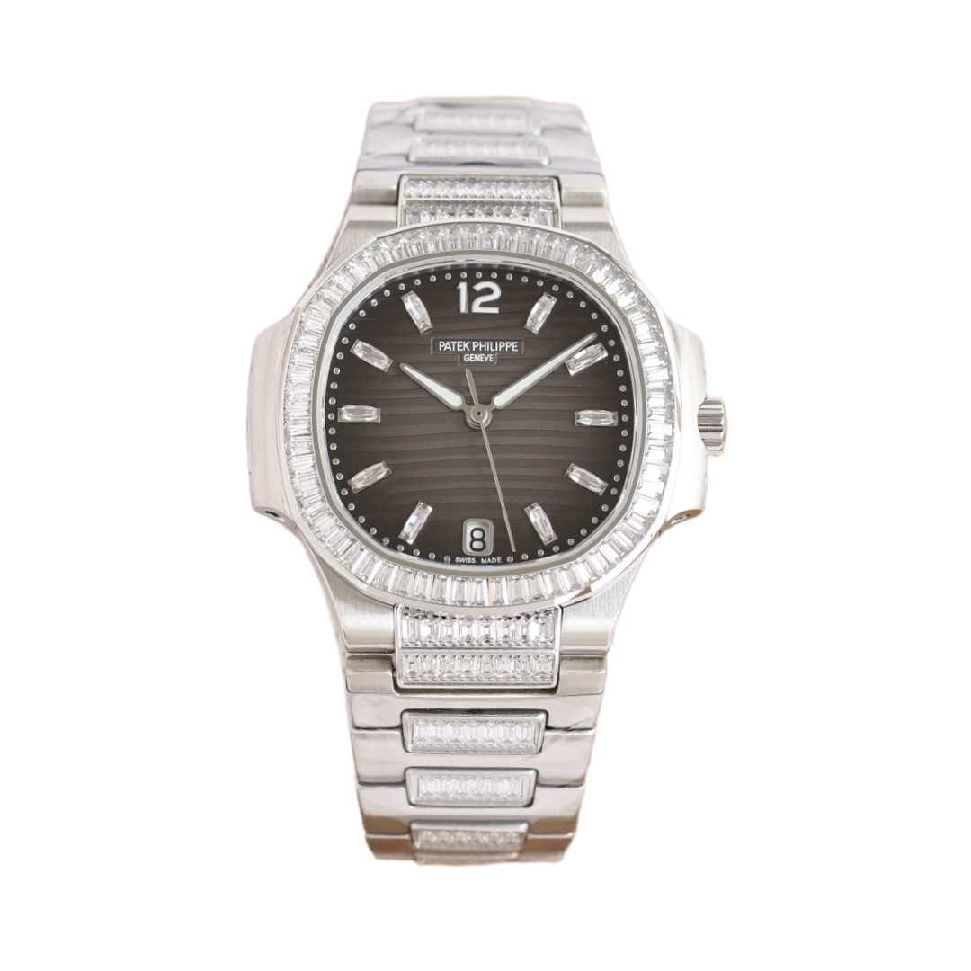 Patek Philippe Nautilus 35.2mm Black Grey Dial Gen Bezel Platinum Strap 7014/1G Woman Ladies