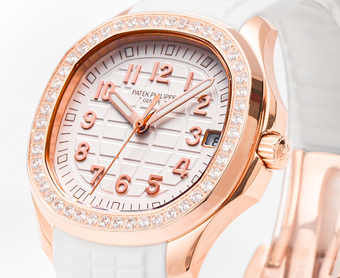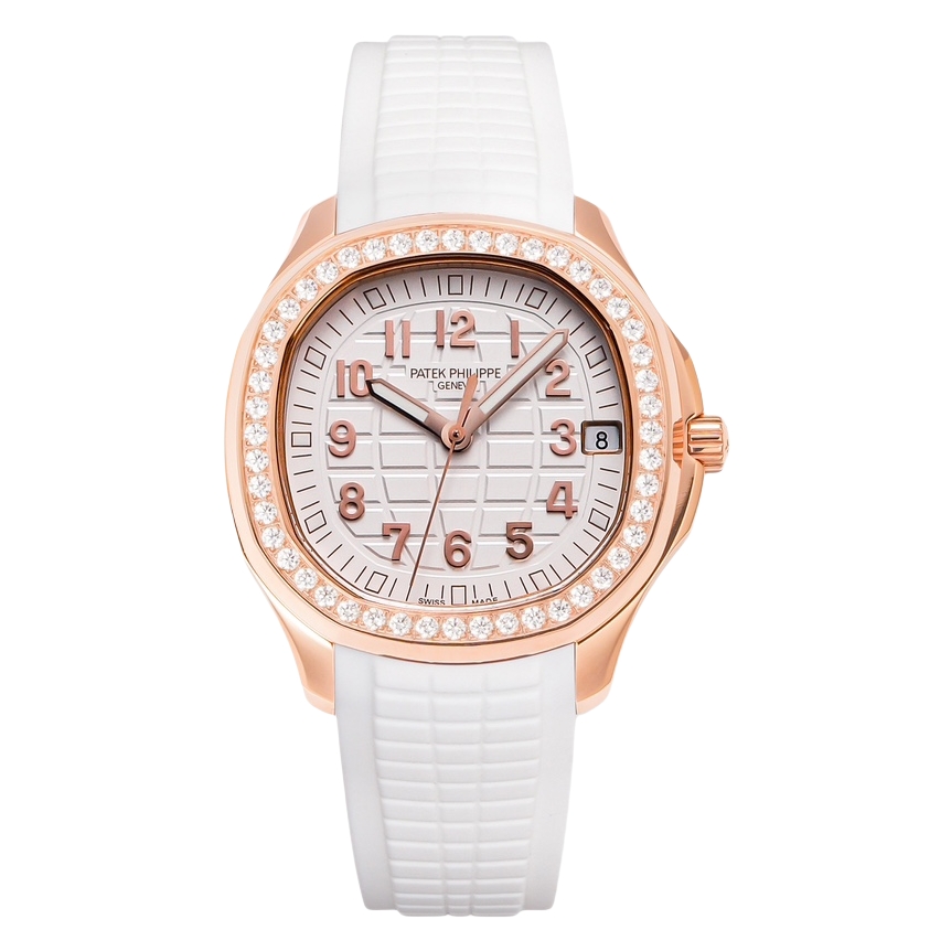 Patek Philippe Aquanaut 38.80mm White Dial Rose Gold Diamond Bezel White Rubber Strap 5268/200R-001 Woman Ladies