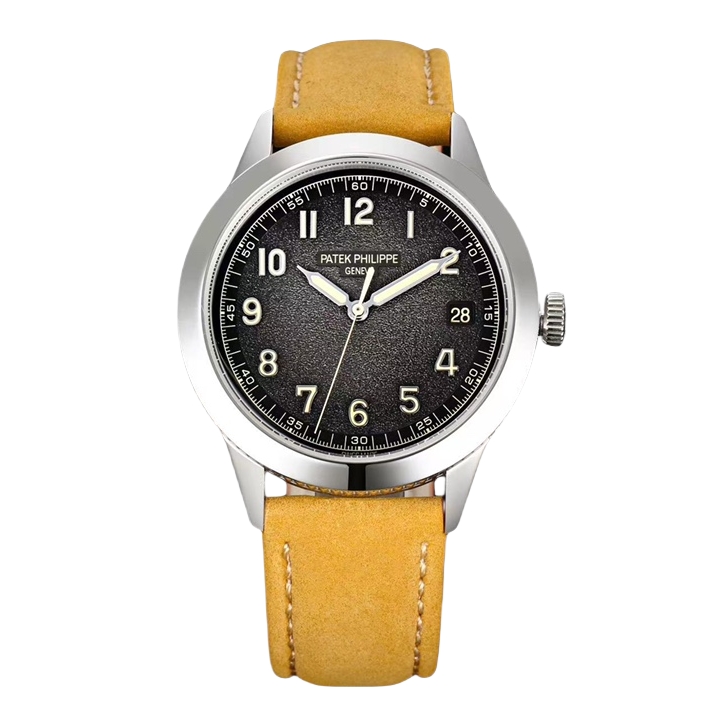 Patek Philippe Calatrava 40mm Carbon Gray Dial Steel Bezel Yellow Suede Strap 5226G-001