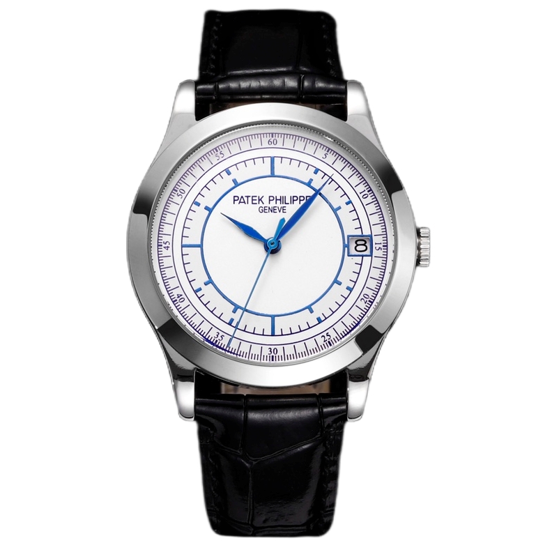 Patek Philippe Calatrava 38mm White Dial Steel Bezel Black Leather Strap 5296G-001 Tiffany Joint