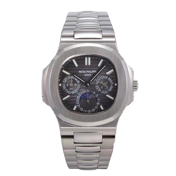 Patek Philippe Nautilus 40mm Black Moon Phase Dial Platinum Bezel Complications 5740
