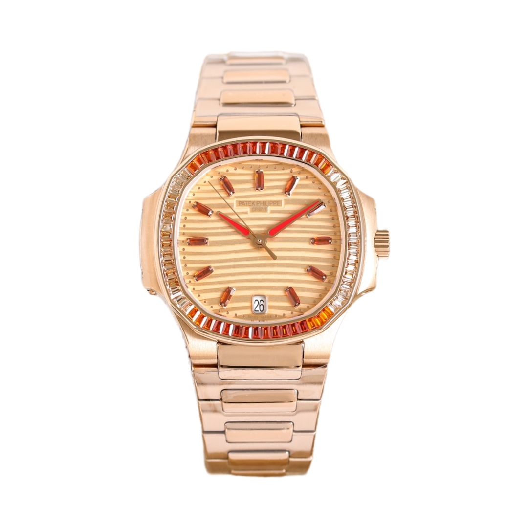 Patek Philippe Nautilus 35.2mm Yellow Dial Gen Bezel Rose Gold Strap 7014/1G Woman Ladies