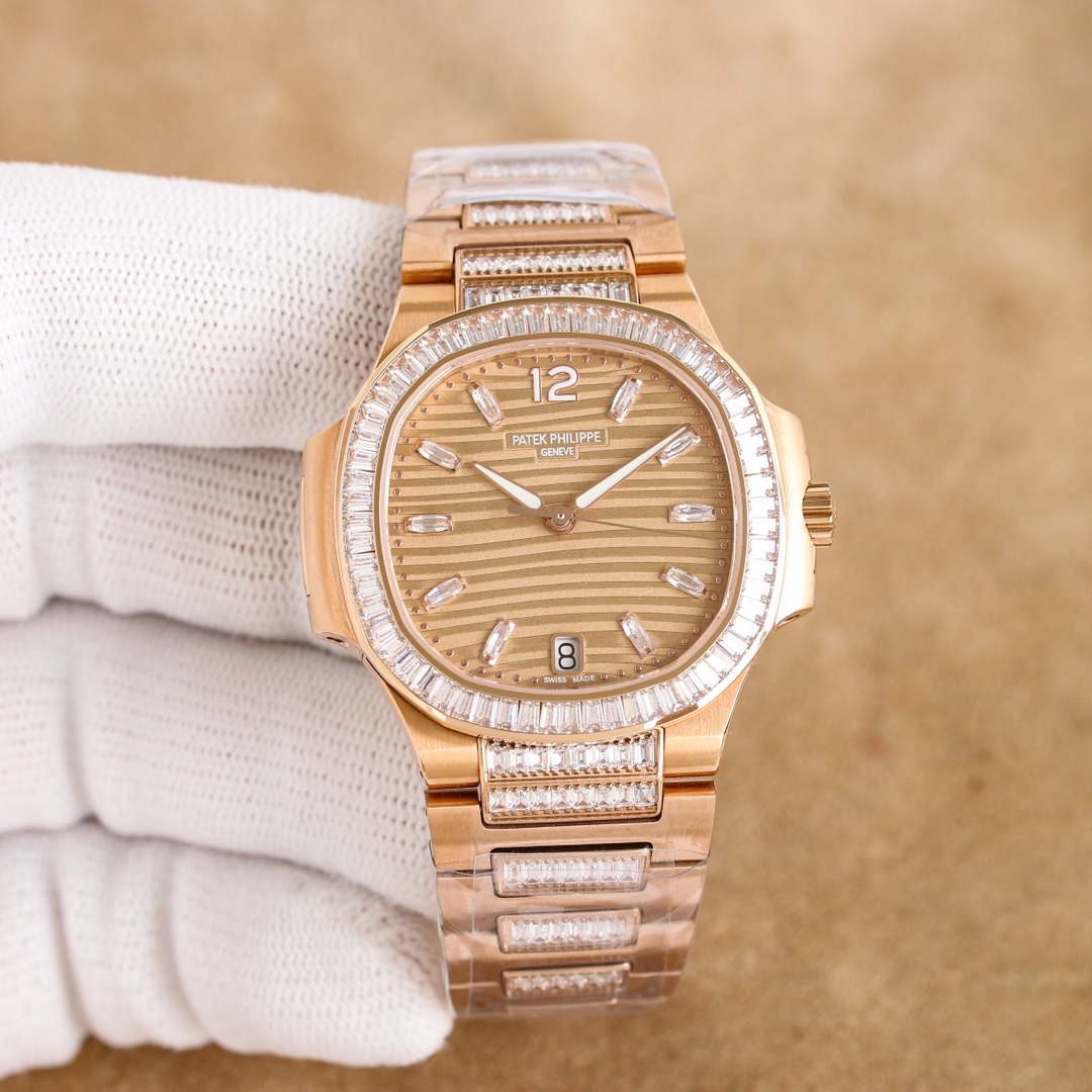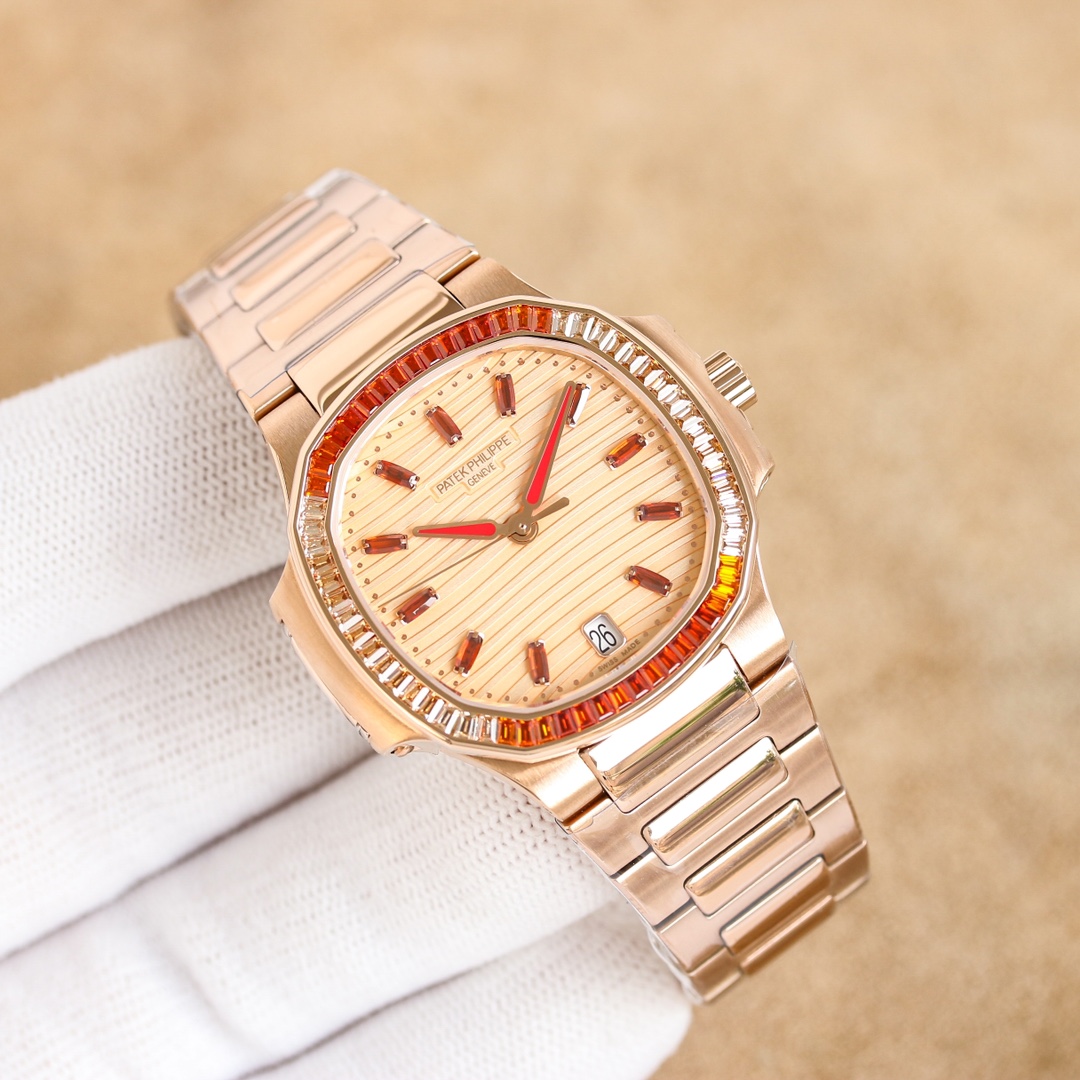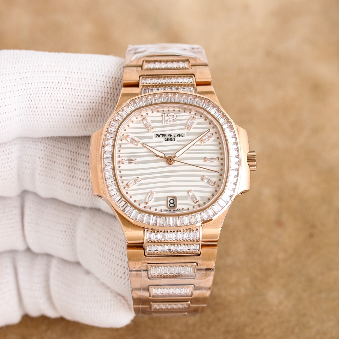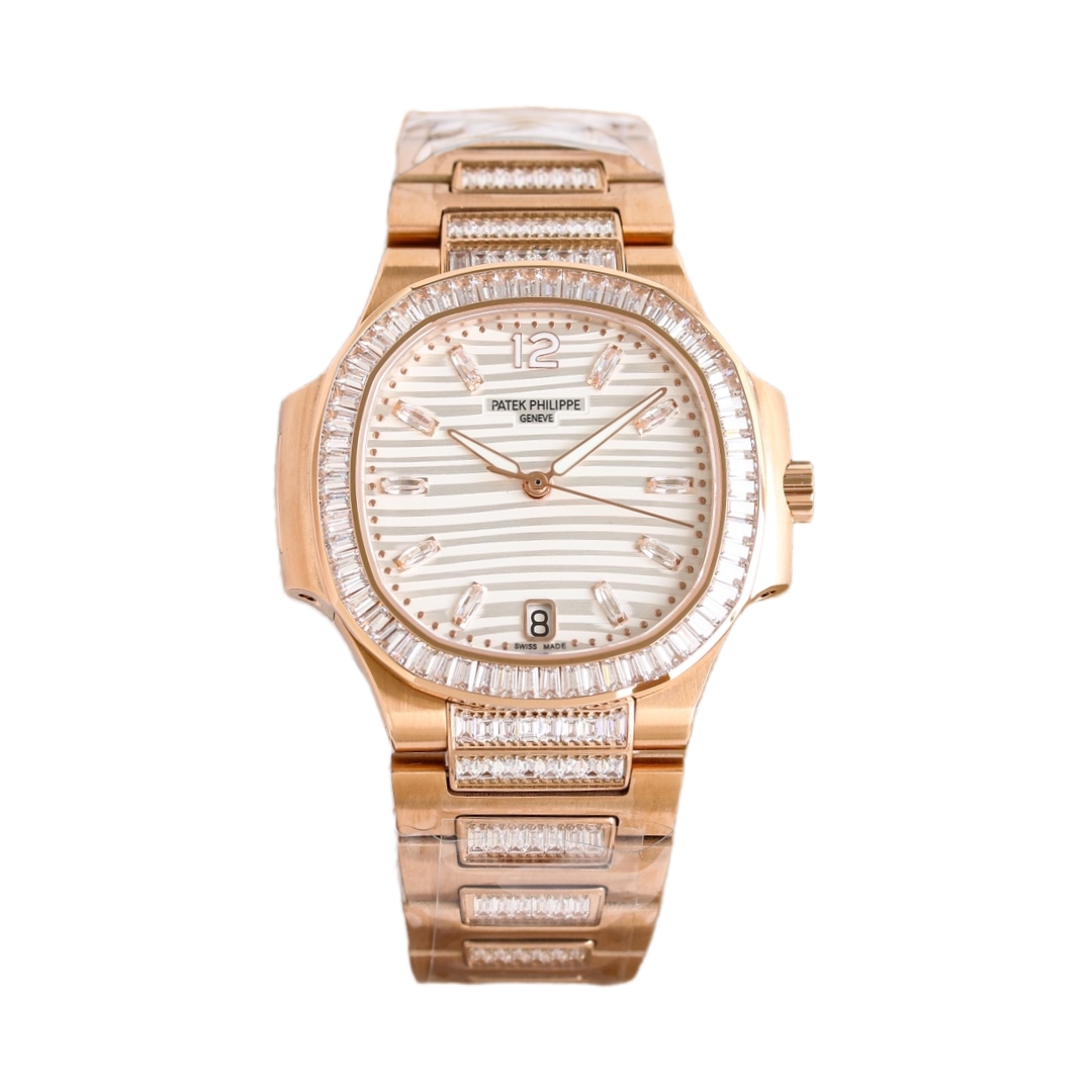 Patek Philippe Nautilus 35.2mm White Dial Gen Bezel Rose Gold Strap 7014/1G Woman Ladies