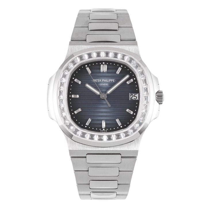 Patek Philippe Nautilus 40mm Black Blue Dial Gen Platinum Bezel Strap 7122