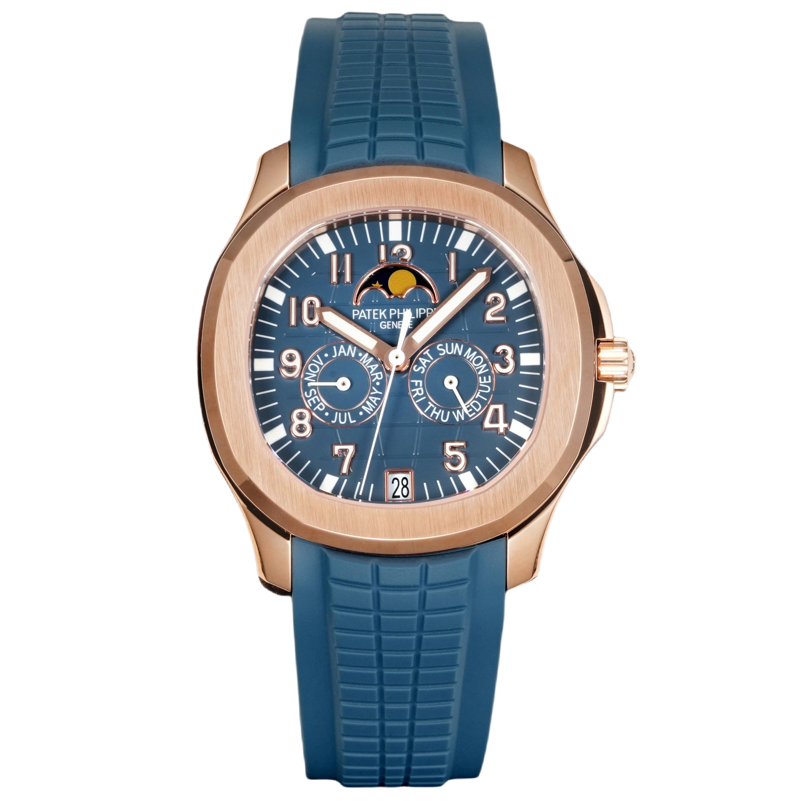 Patek Philippe Aquanaut 39.90mm Blue Dial Rose Gold Bezel Blue Rubber Strap 5261R-001 Woman Ladies