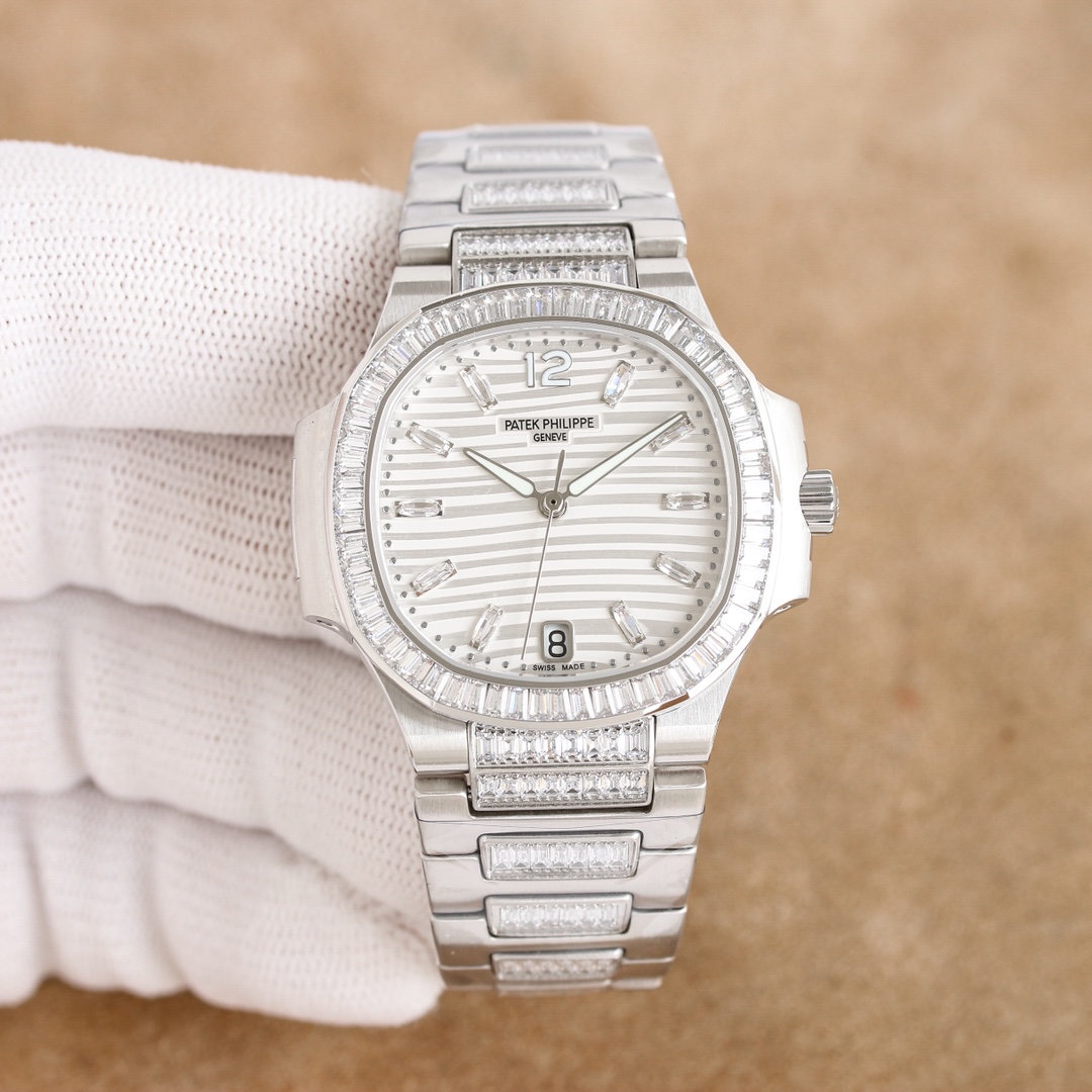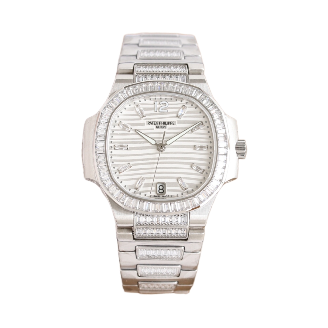 Patek Philippe Nautilus 35.2mm White Dial Gen Bezel Platinum Strap 7014/1G Woman Ladies
