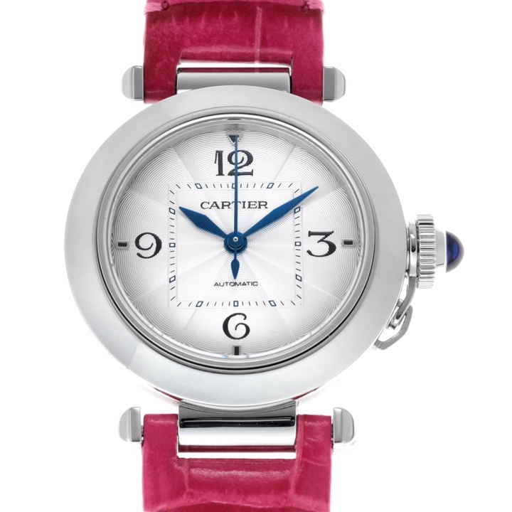 Cartier Pasha 35mm White Dial Steel Bezel Rose Red Leather Strap WGPA0014 Ladies