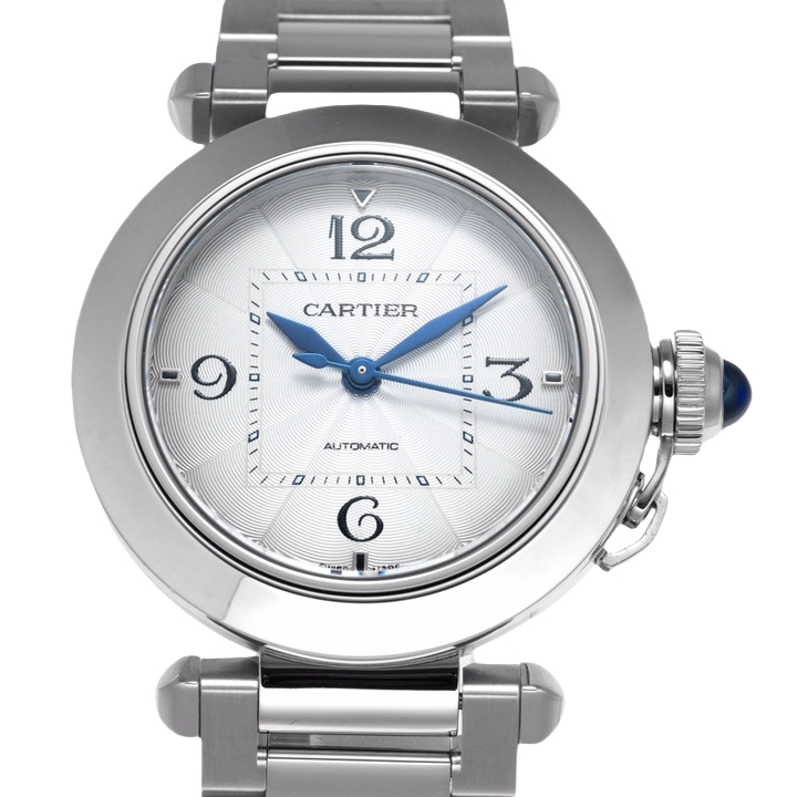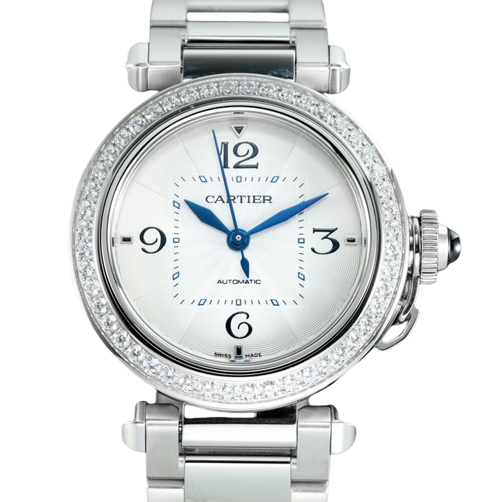 Cartier Pasha 35mm White Dial Diamond Steel Bezel Strap WSPA0012 Ladies
