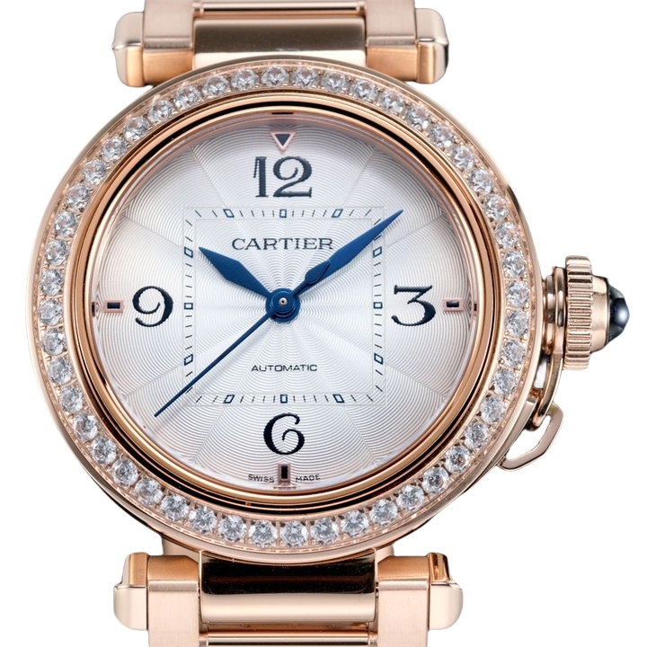 Cartier Pasha 35mm White Dial Diamond Rose Gold Bezel Strap WJPA0013 Ladies