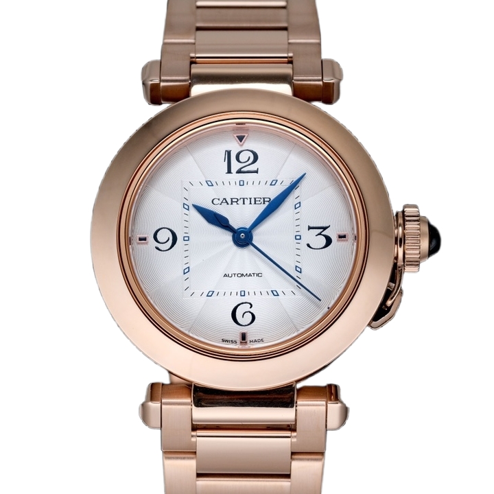 Cartier Pasha 35mm White Dial Rose Gold Bezel Strap WJPA0012 Ladies