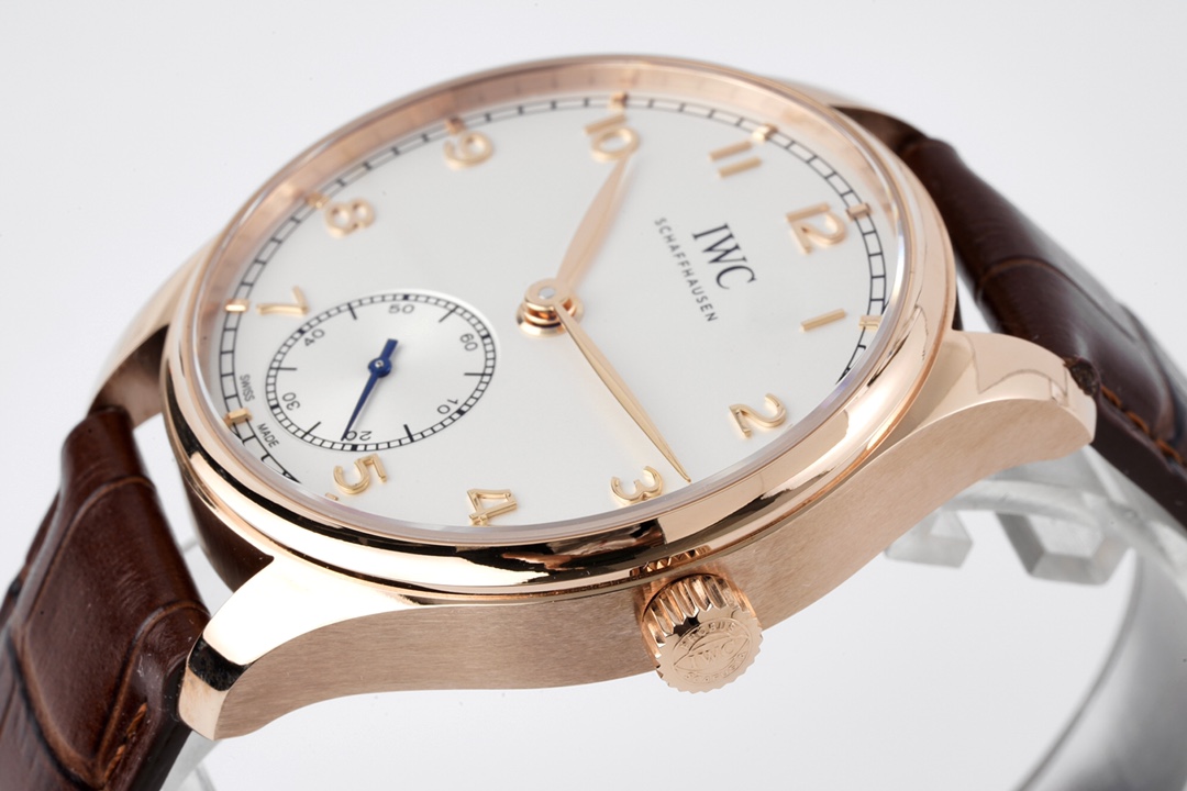 IWC Portugieser 40mm White Dial Rose Gold Bezel Brown Leather Strap IW358306