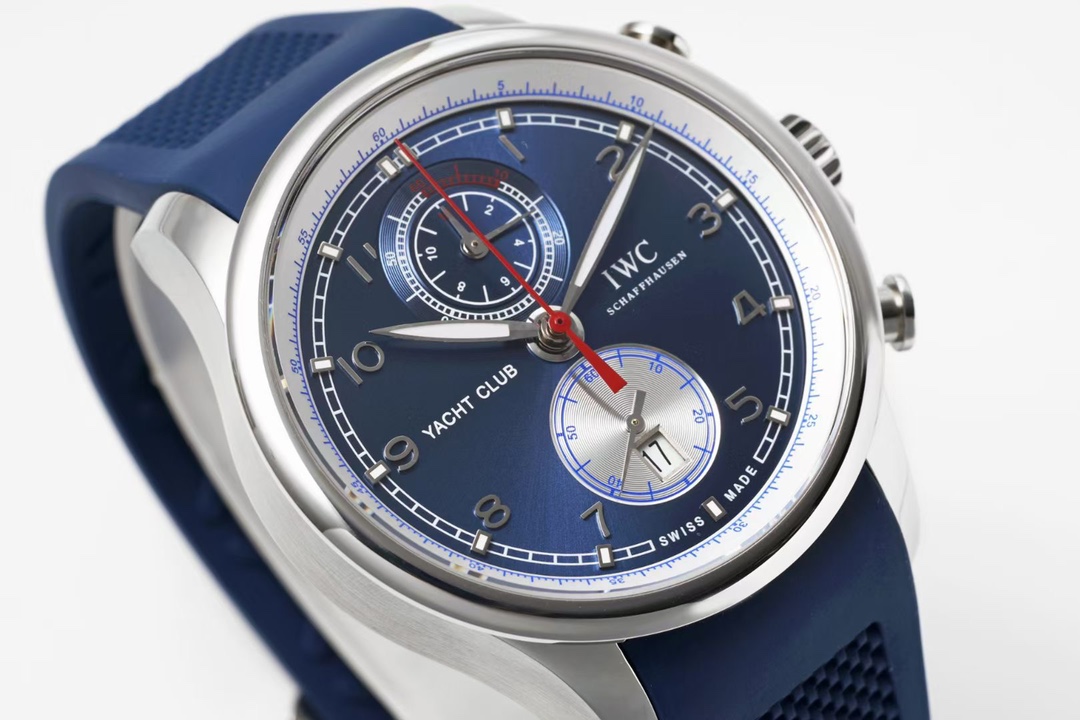 • IWC Portugieser Yacht Clue 45mm Blue Dial Steel Bezel Blue Rubber Strap IW390704