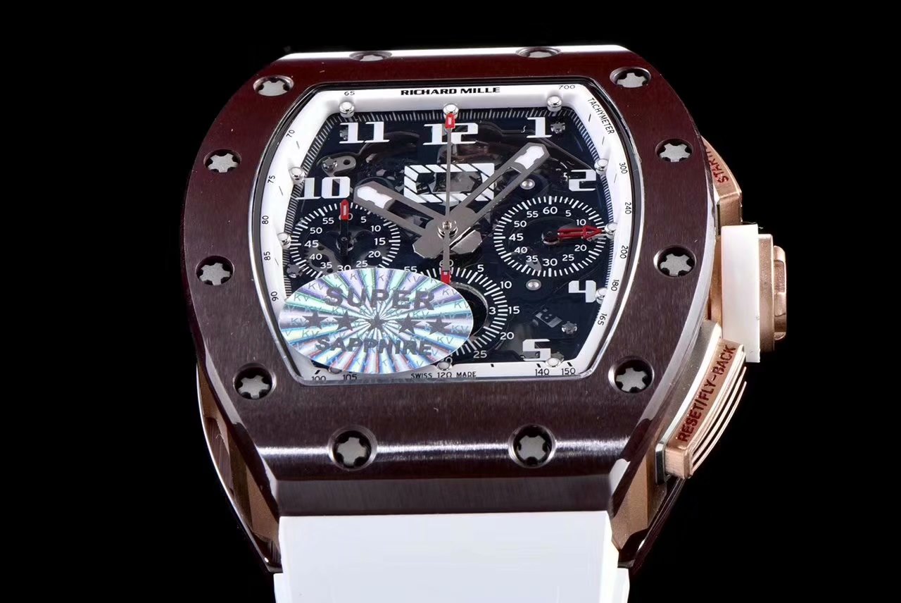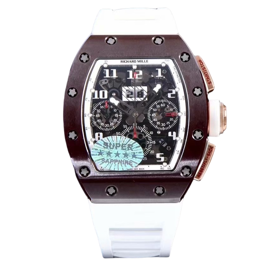 Richard Mille RM 011 50mm X 40mm Black Dial Coffee Gold Bezel White Rubber Strap