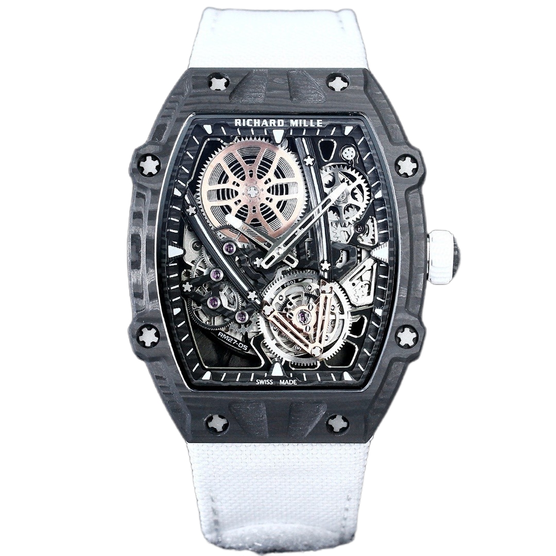 Richard Mille RM27-05 37.25mm x 47.25mm White Dial Black Carbon Fiber Bezel White Nylon Strap