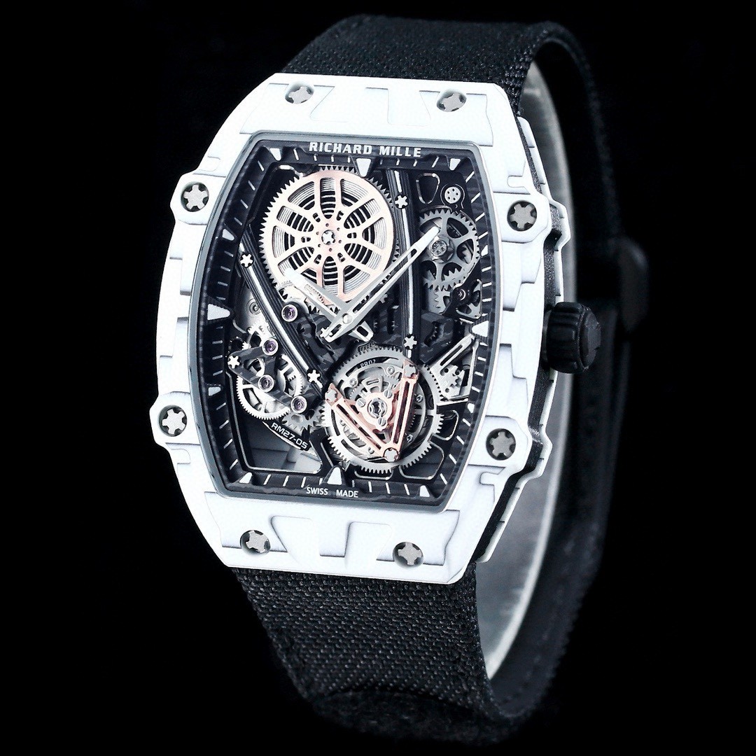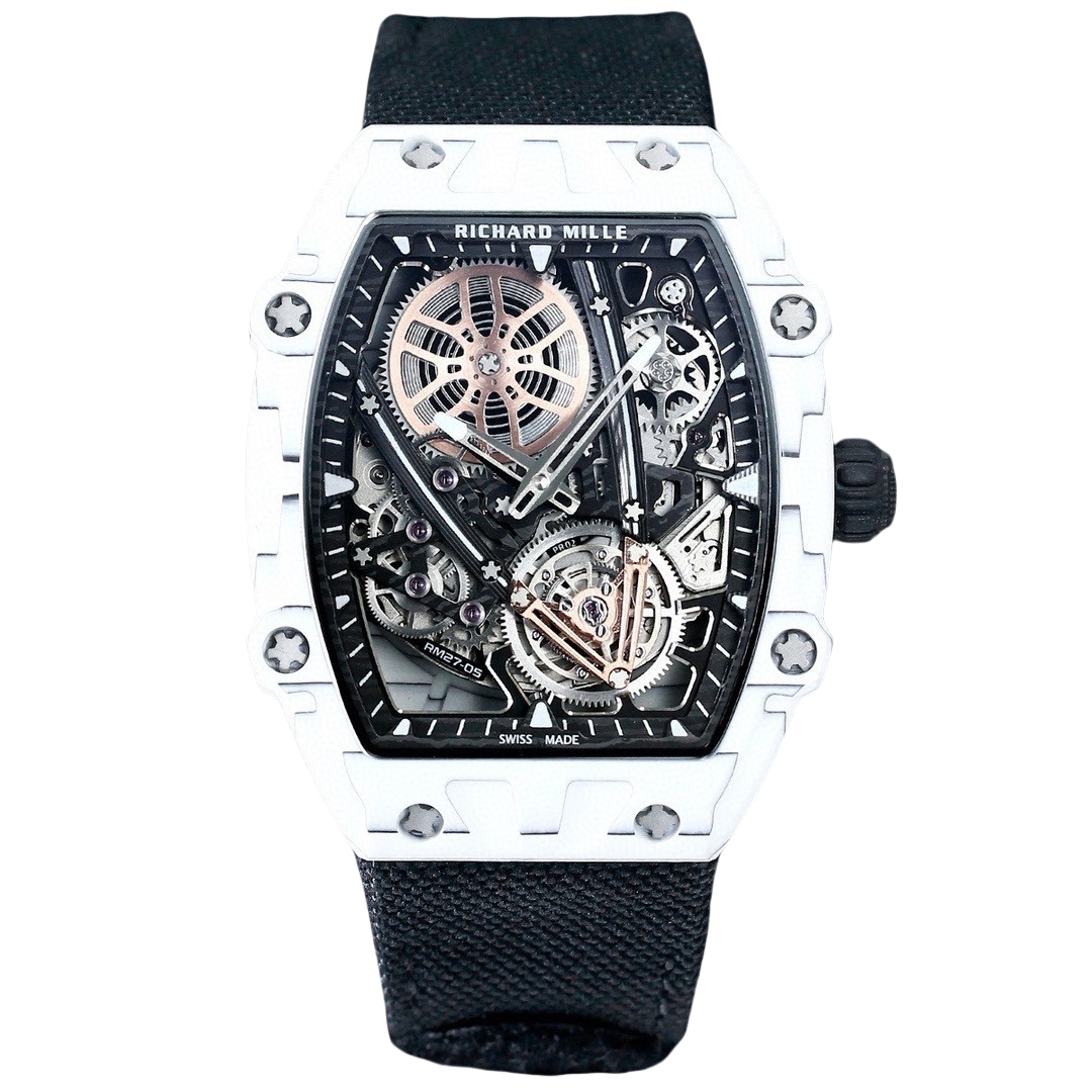 Richard Mille RM27-05 37.25mm x 47.25mm Black Dial White Carbon Fiber Bezel Black Nylon Strap