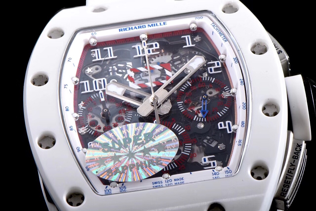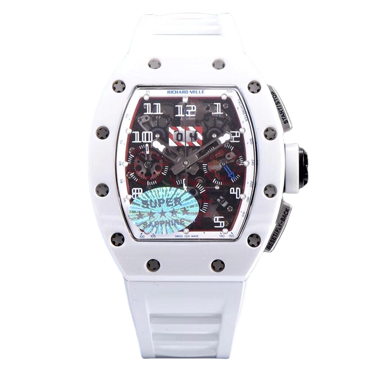 Richard Mille RM 011 50mm X 40mm Titanium Dial White Ceramics Bezel White Rubber Strap