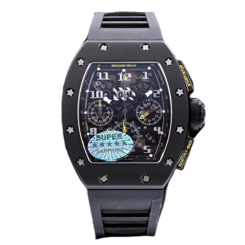 Richard Mille RM 011 50mm X 40mm Black Yellow Dial Black Ceramics Bezel Black Rubber Strap