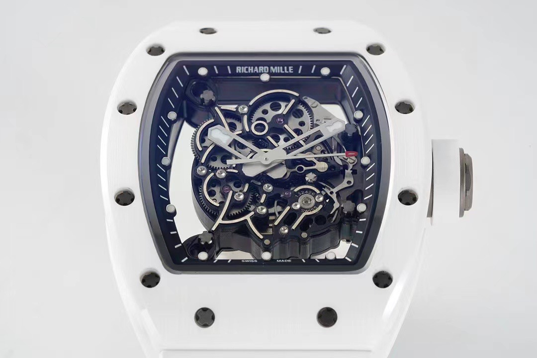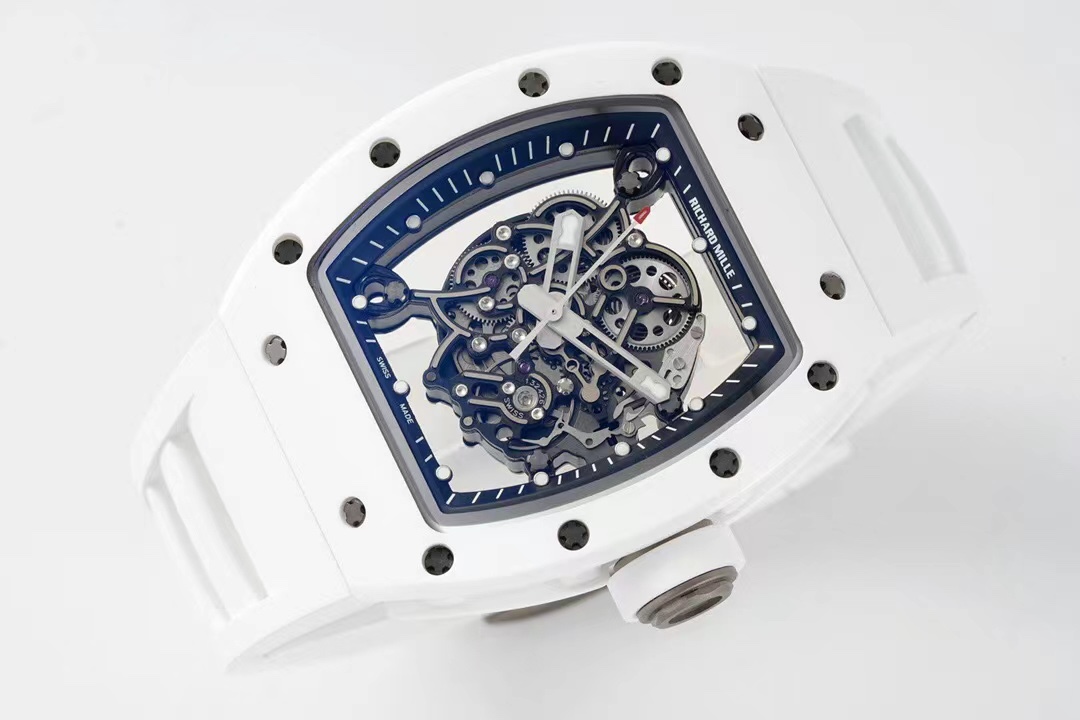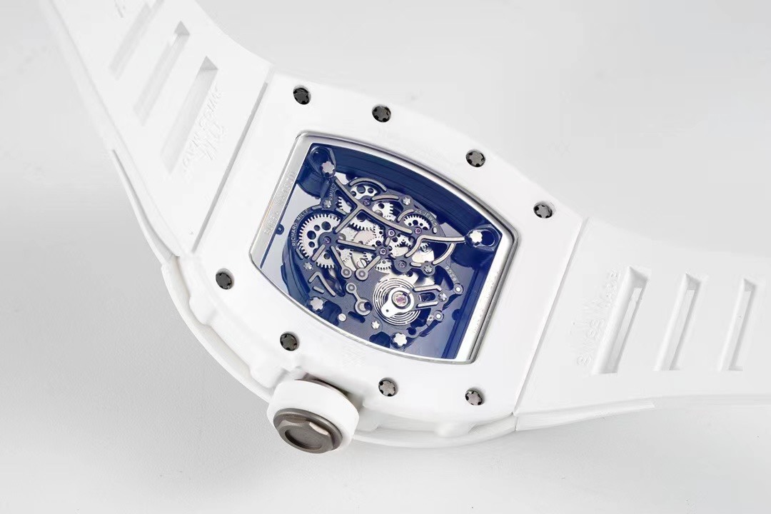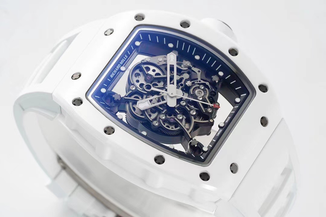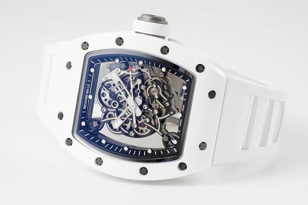 | Richard Mille RM 055 49.90mm x 42.70mm Grey Hollow Dial White Ceramics Bezel White Rubber Strap | |
