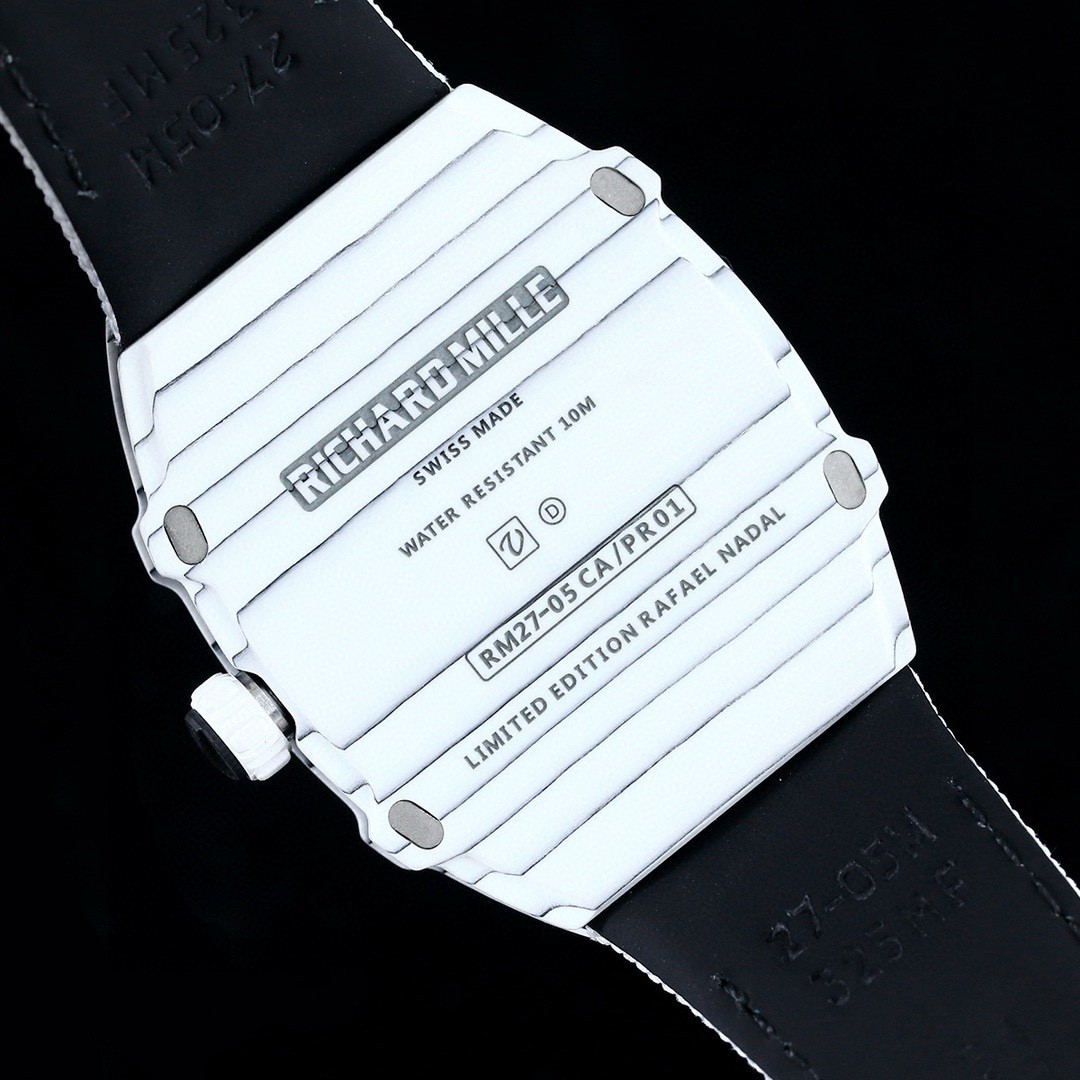 | Richard Mille RM27-05 37.25mm x 47.25mm Black Dial White Carbon Fiber Bezel White Rubber Strap | |