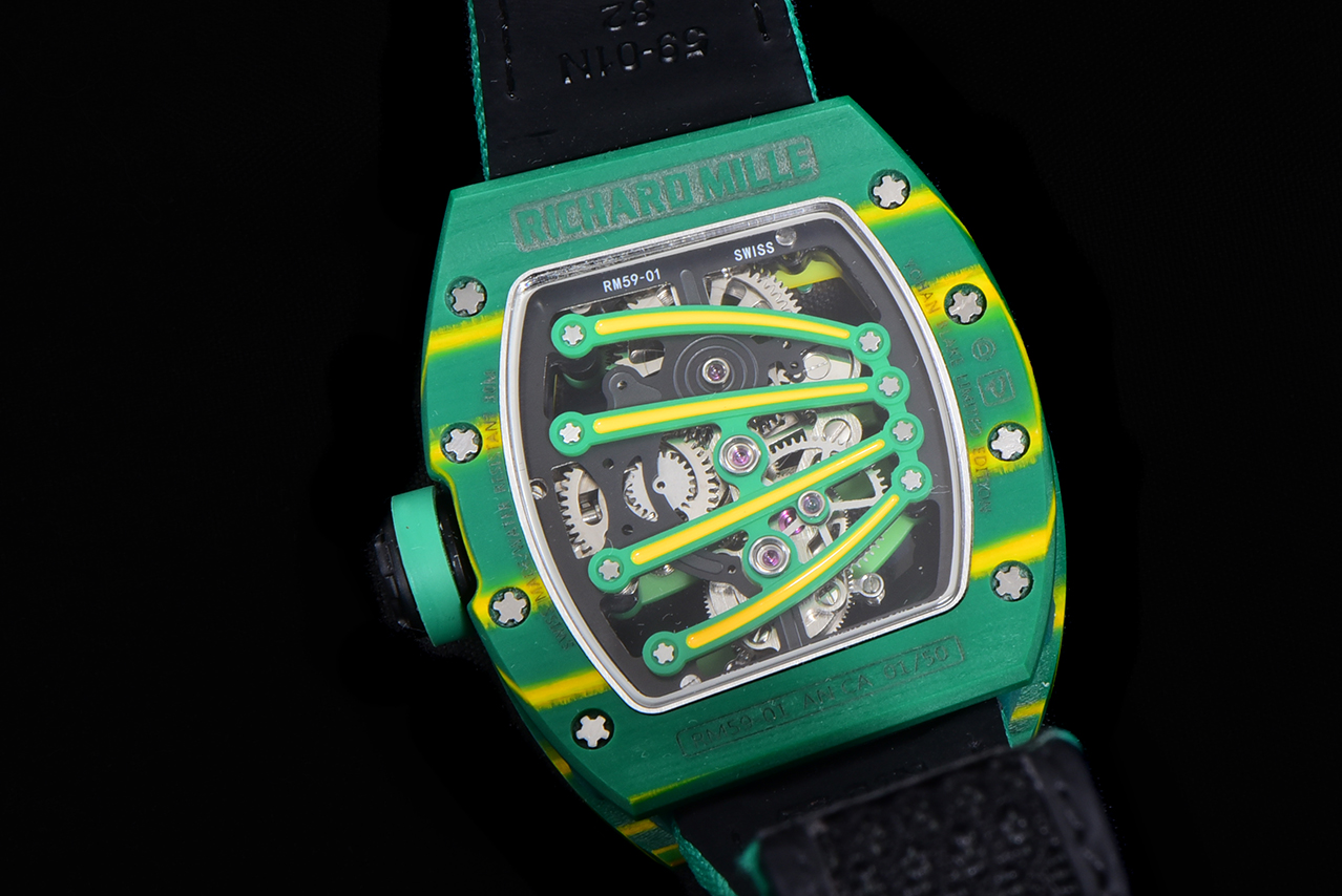 • Richard Mille RM59-01 50.24mm X 42.70mm Green Yellow Dial Green Yellow Bezel Green Strap Tourbillon Yohan Blake