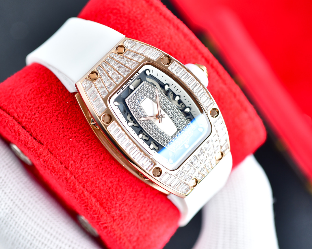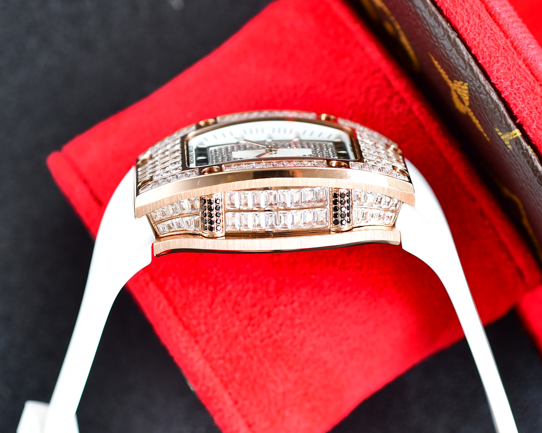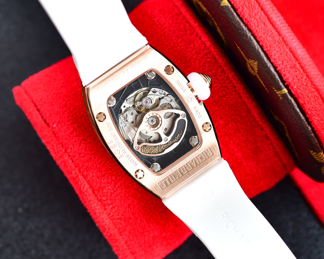 | Richard Mille RM07-01 45.66mm x 31.40mm Diamond White Dial Rose Gold Square Diamond Bezel White Rubber Strap Ladies Woman | |