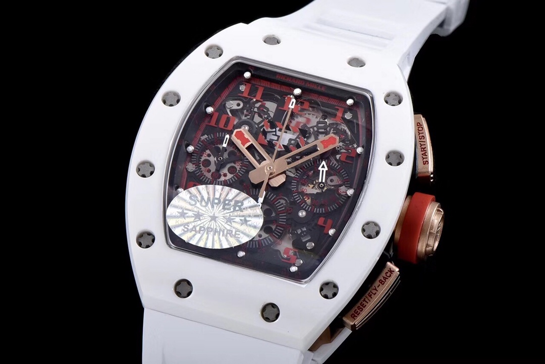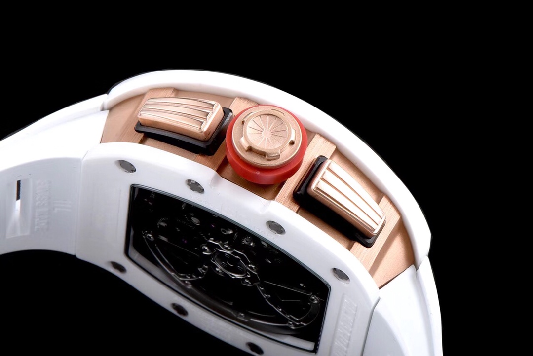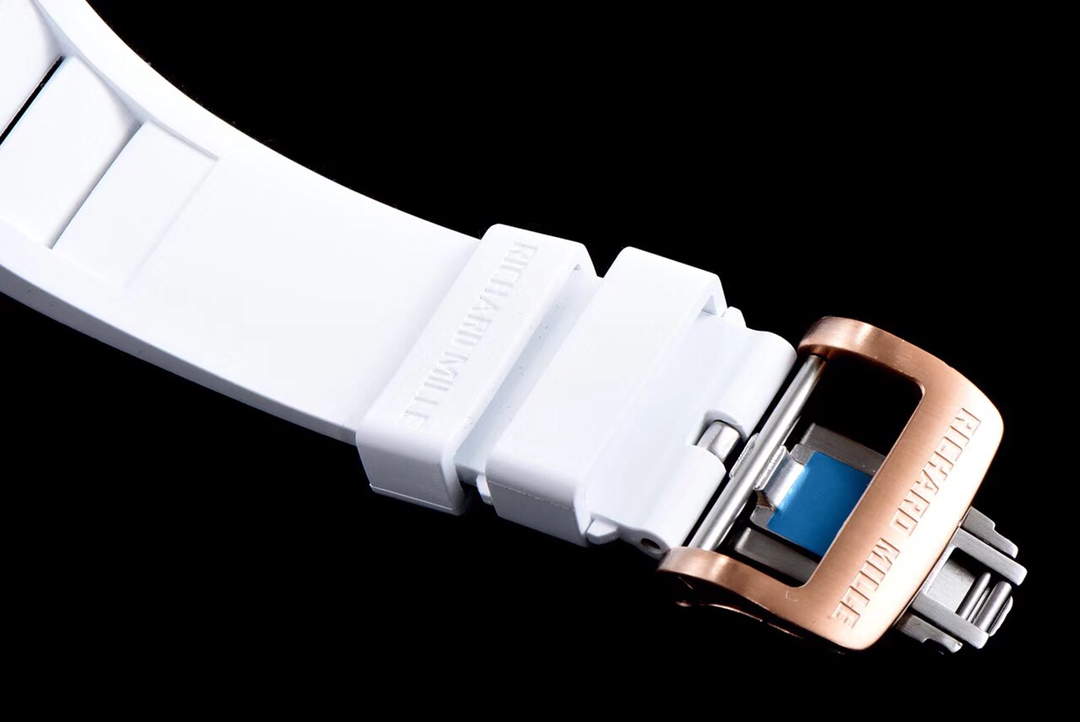 | Richard Mille RM 011 50mm X 40mm Rose Gold Dial White Ceramics Bezel White Rubber Strap | |