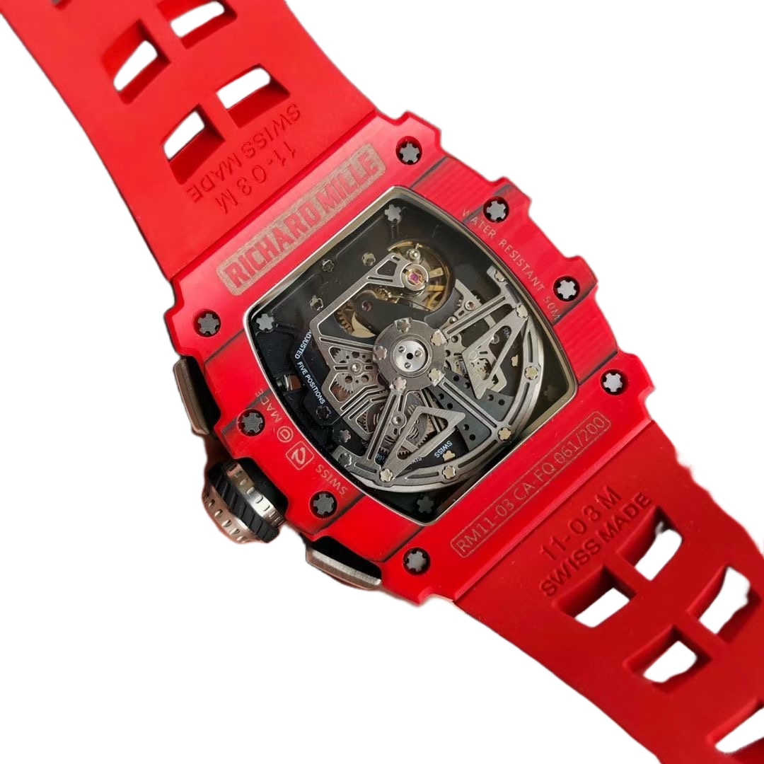 • Richard Mille RM 11-03 49.94mm x 44.50mm Dial Red Carbon Fiber Bezel Red Rubber Strap