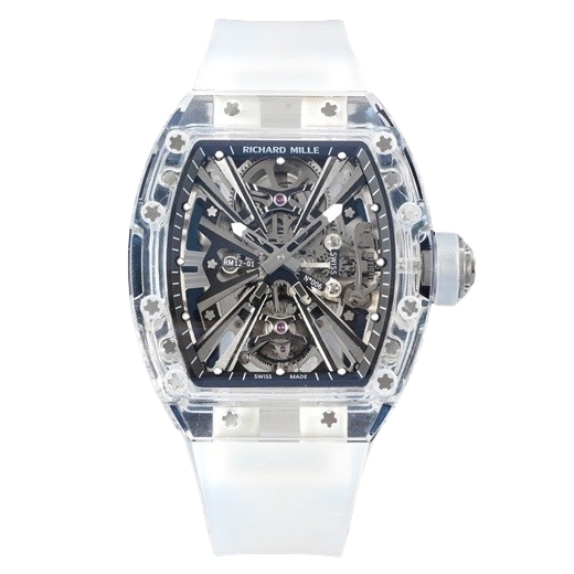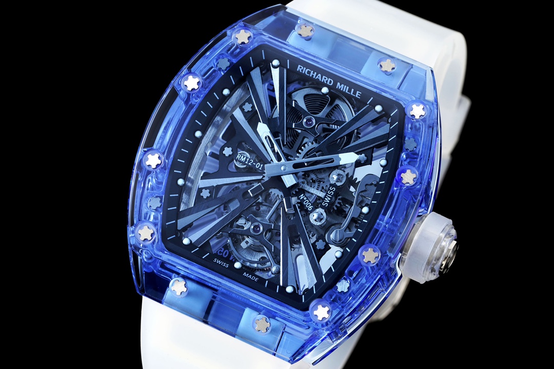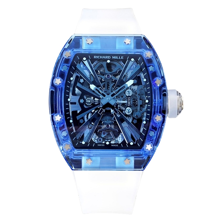 Richard Mille RM 12-01 44.50mm x 49.94mm Hollow Dial White Transparent Bezel Blue Rubber Strap