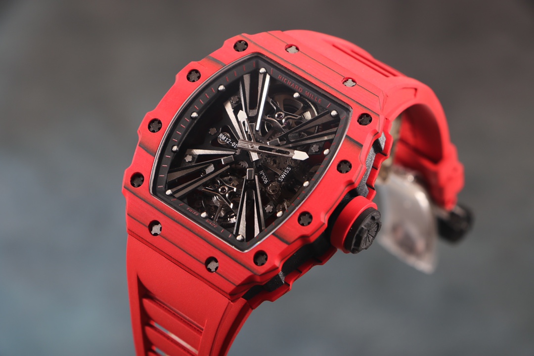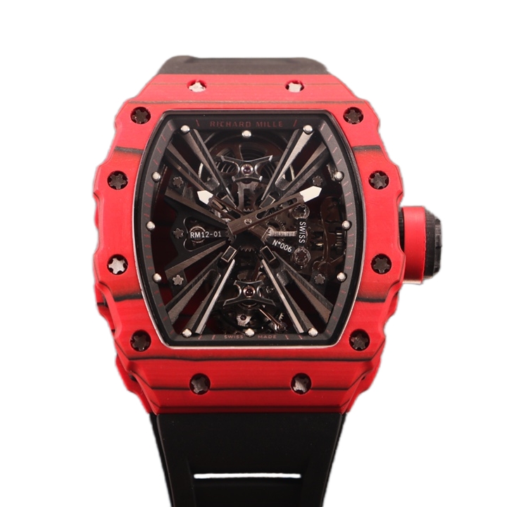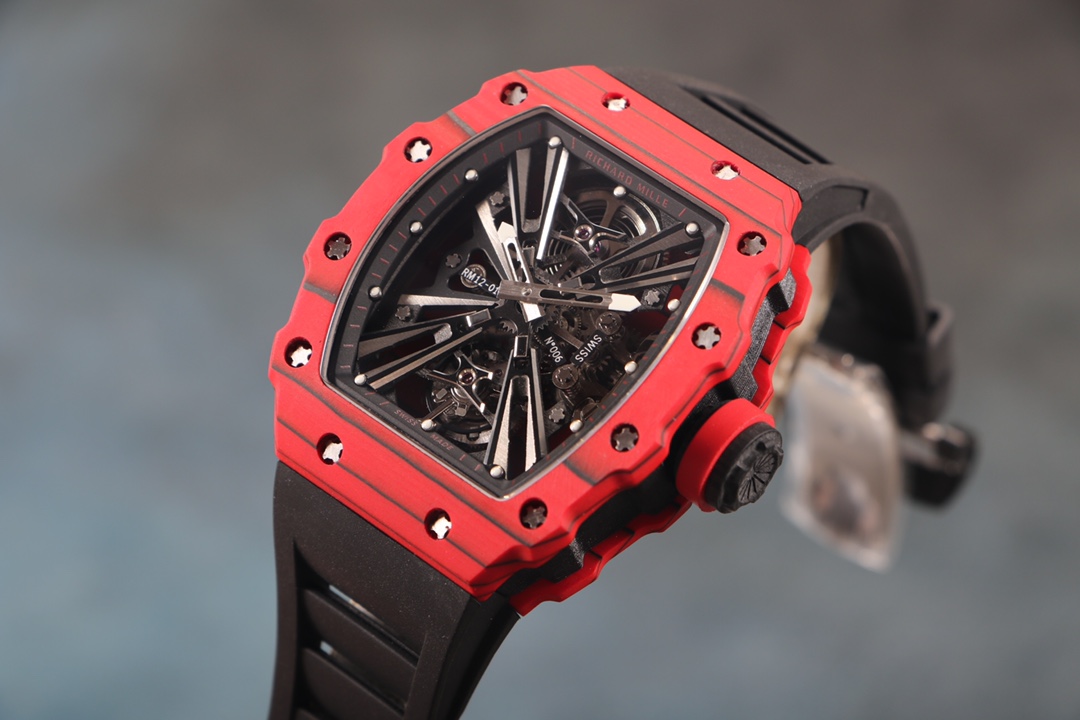 Richard Mille RM 12-01 49.94mm x 44.50mm Dial Red Carbon Fiber Bezel Black Rubber Strap