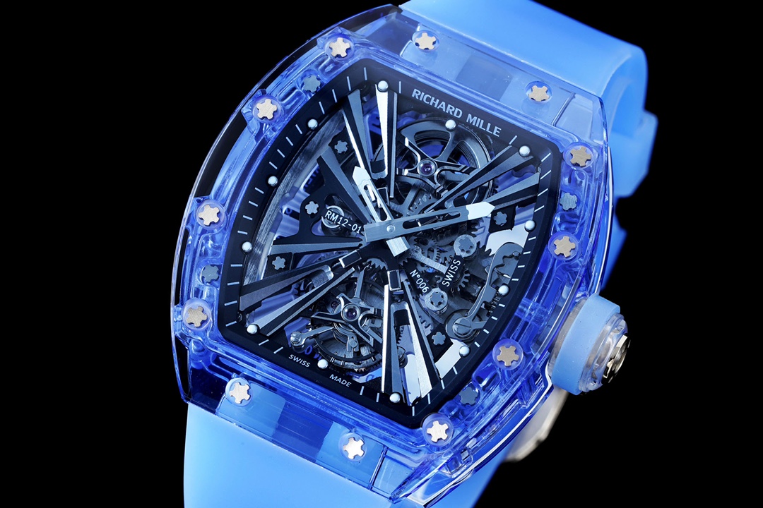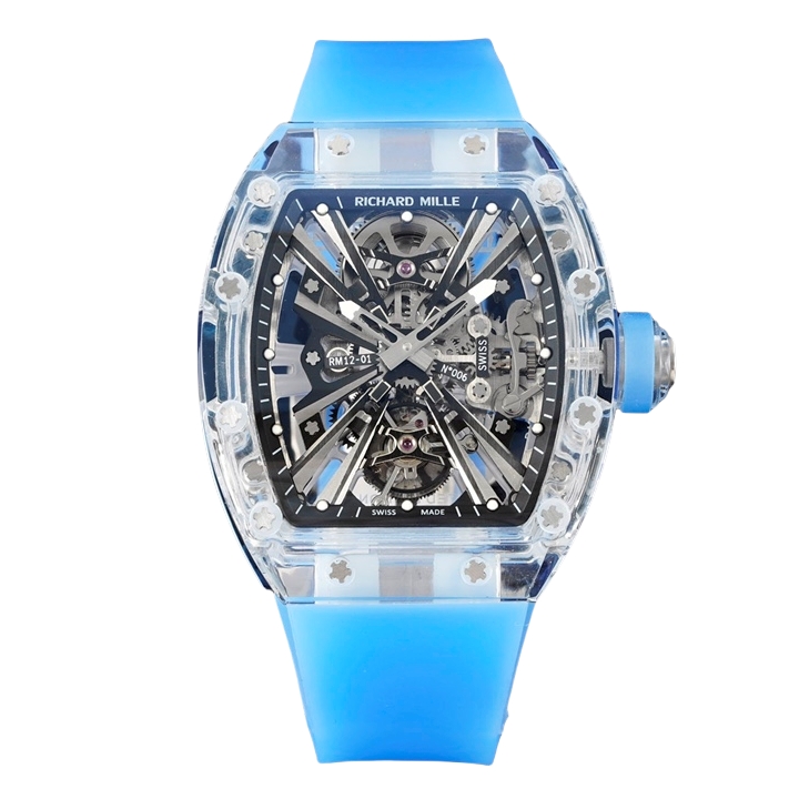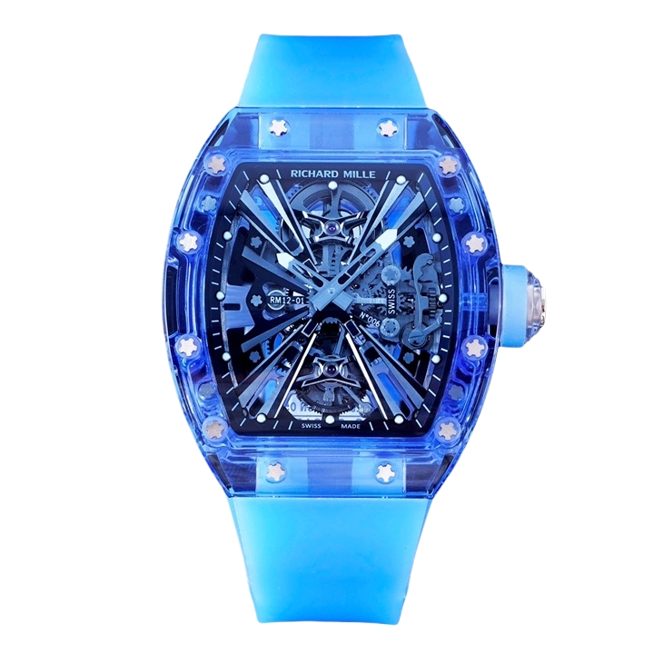 Richard Mille RM 12-01 44.50mm x 49.94mm Hollow Dial Blue Transparent Bezel Blue Rubber Strap