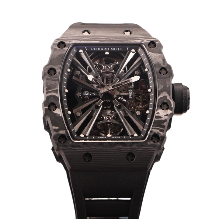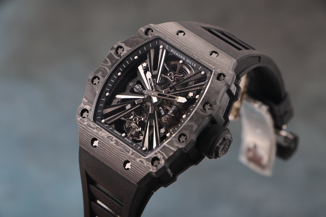 Richard Mille RM 12-01 49.94mm x 44.50mm Dial Black Carbon Fiber Bezel Black Rubber Strap
