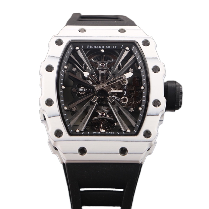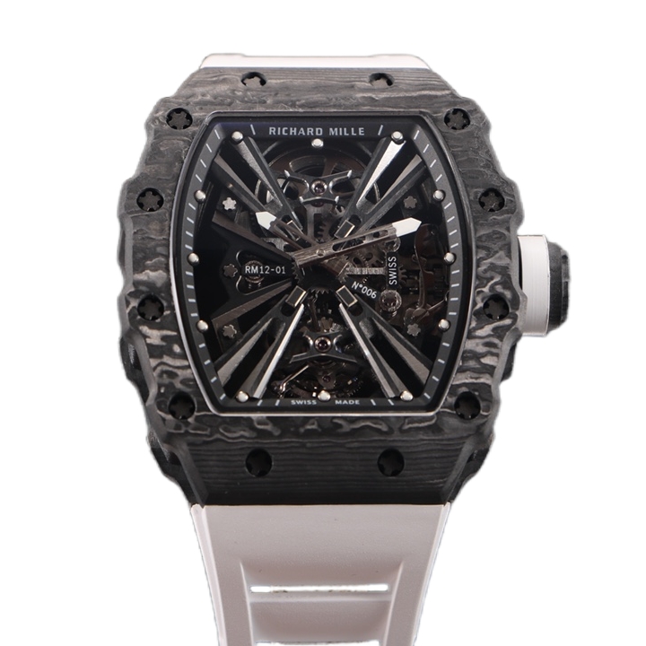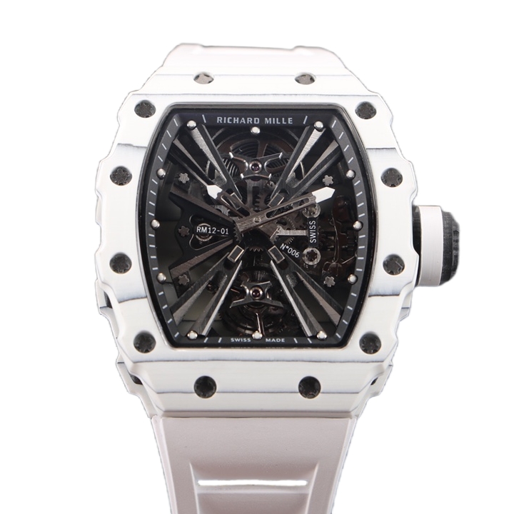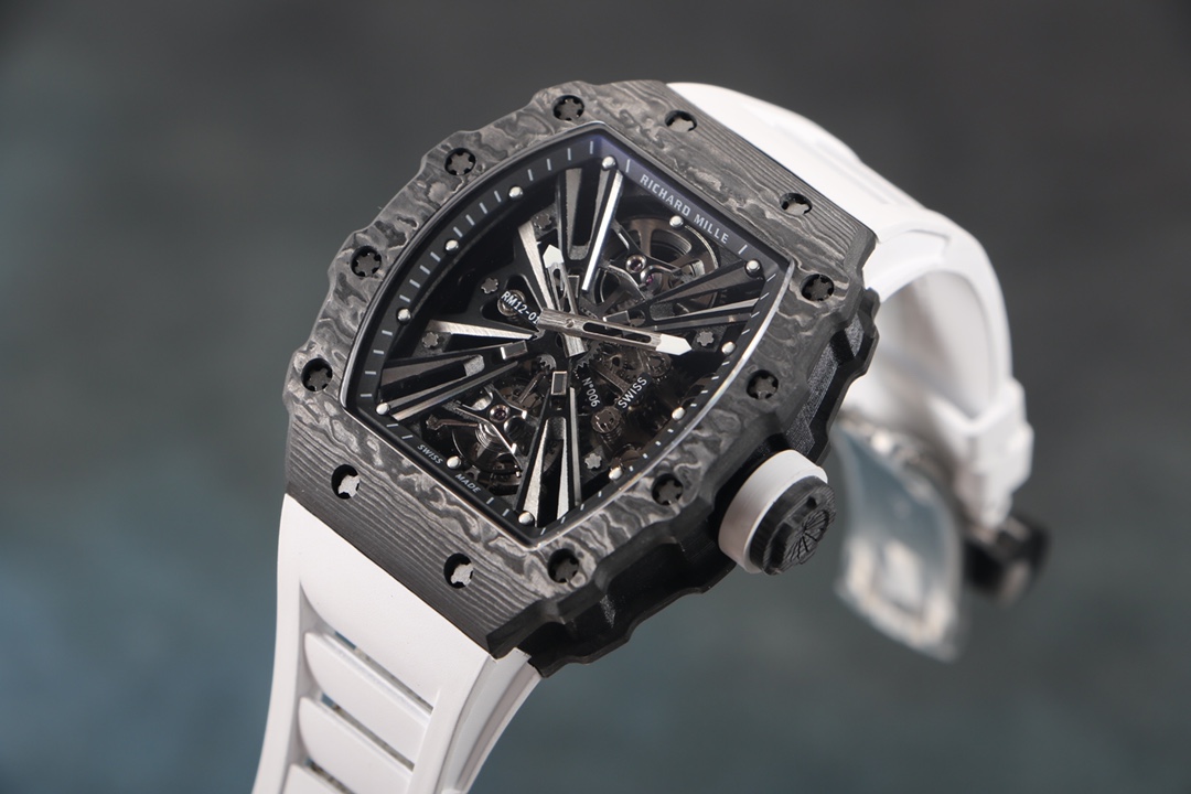 Richard Mille RM 12-01 49.94mm x 44.50mm Dial White Carbon Fiber Bezel White Rubber Strap