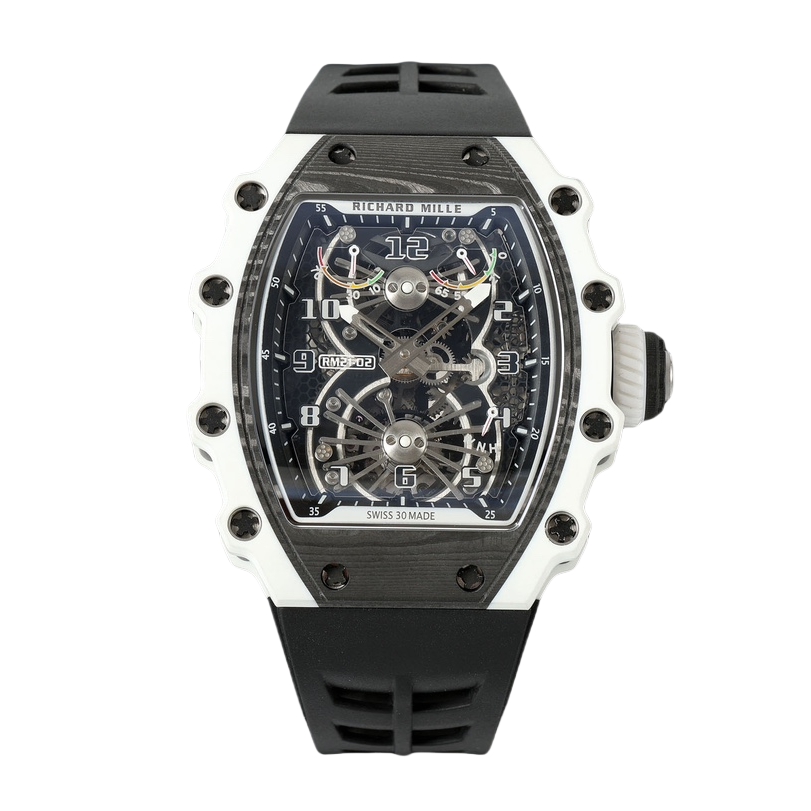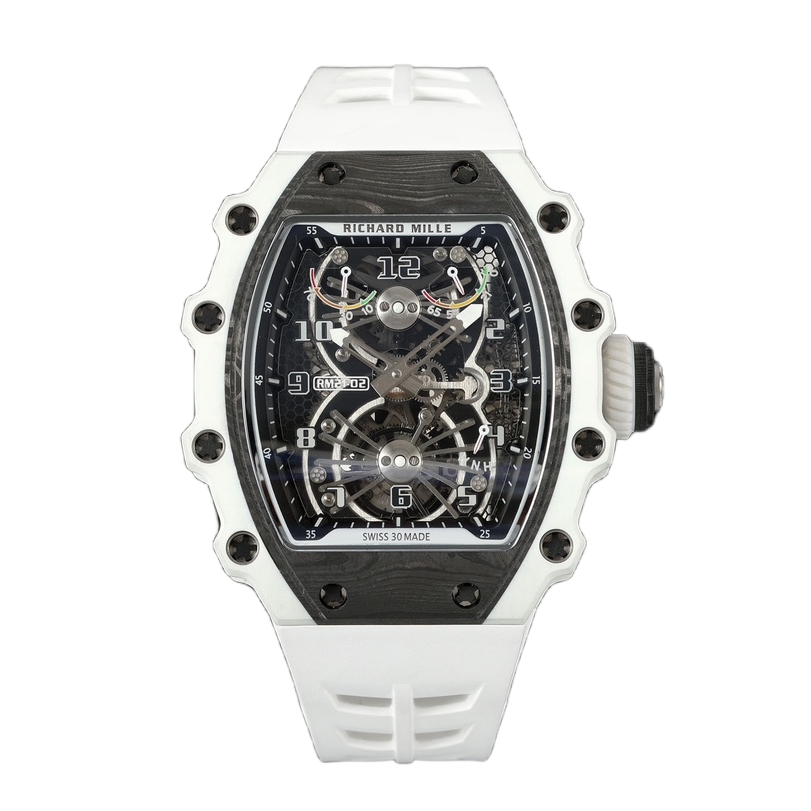 Richard Mille RM21-02 Ti CA FQ 42.68mm x 50.12mm Grey Dial Black White Ceramics Bezel White Rubber Strap