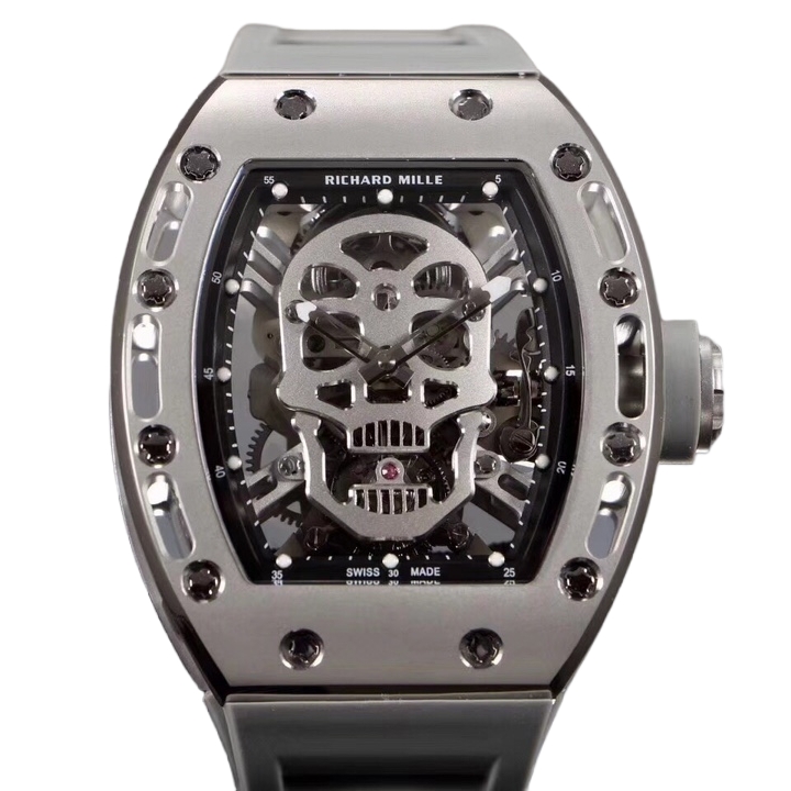 Richard Mille RM52-01 50mm × 42.7mm Skull Dial Titanium Steel Bezel Black Rubber Strap