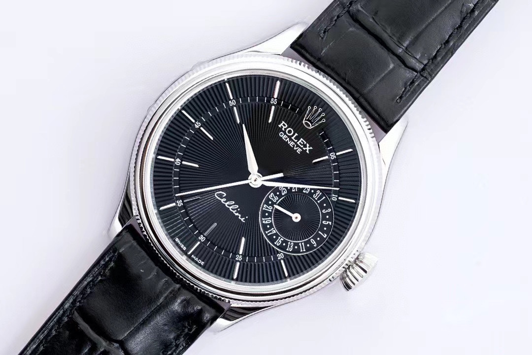 Rolex Cellini Date 39mm Black Dial Platinum Bezel Black Leather 50519-0007