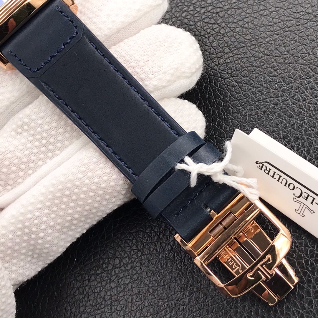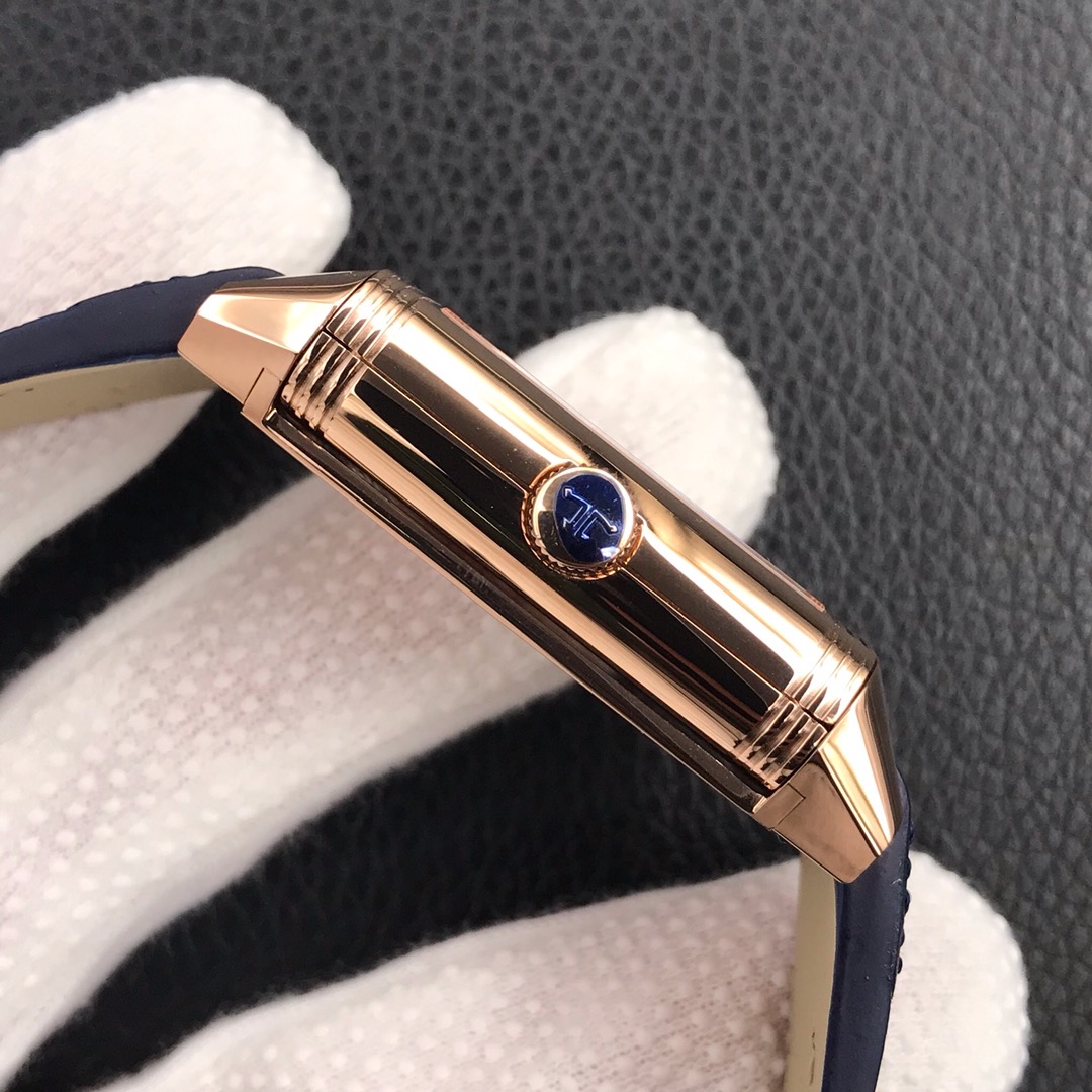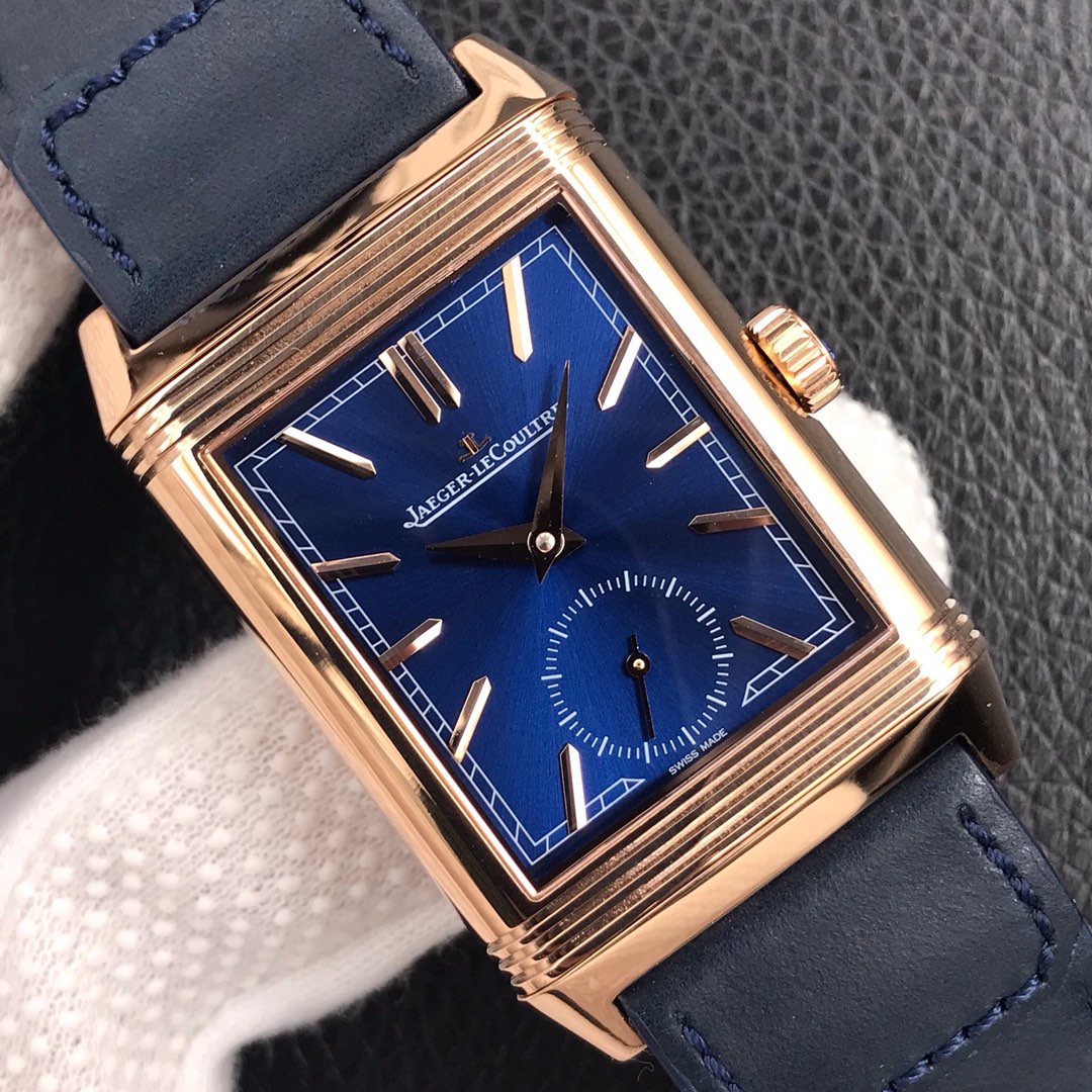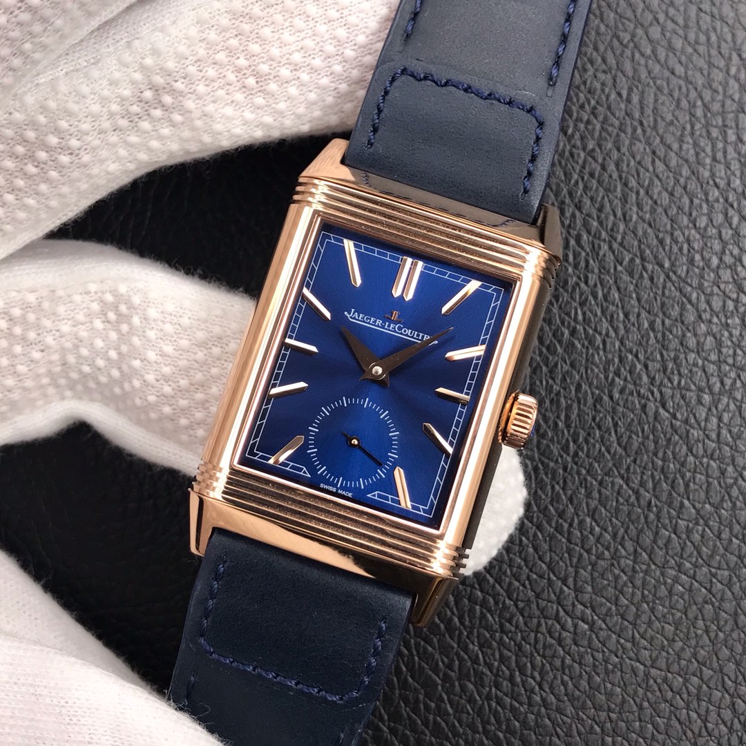 Jaeger-LeCoultre Reverso 47mm X 28.3mm Blue Dial Rose Gold Bezel Blue Leather Strap Q3982590 Duoface Small Seconds