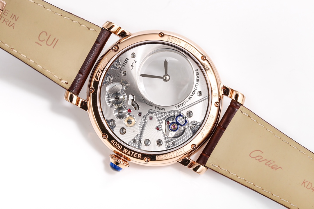 | Cartier Rotonde 42mm Hollow Dial Rose Gold Diamond Bezel Brown Leather Strap WD1556223 | |
