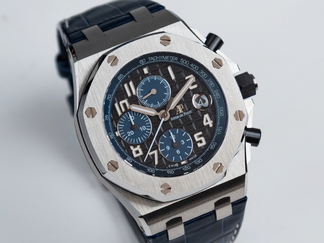 | Audemars Piguet Royal Oak Offshore Chronograph 42mm Black Blue Dial Steel Bezel Blue Leather 26470ST.OO.A028CR.01 | |